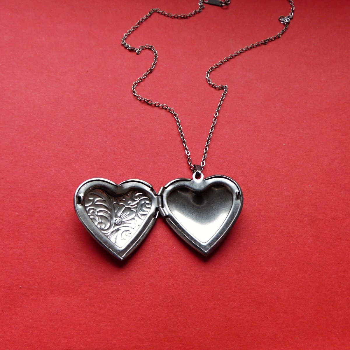 Nerezový řetízek s ozdůbkou , tentokrát otevírací medailonek .