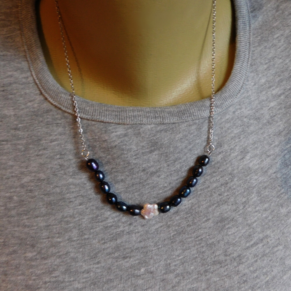 Náhrdelník je vyrobený z krásné keshi perly a malých tmavých říčních perlí ...Velmi moderní a pěkné