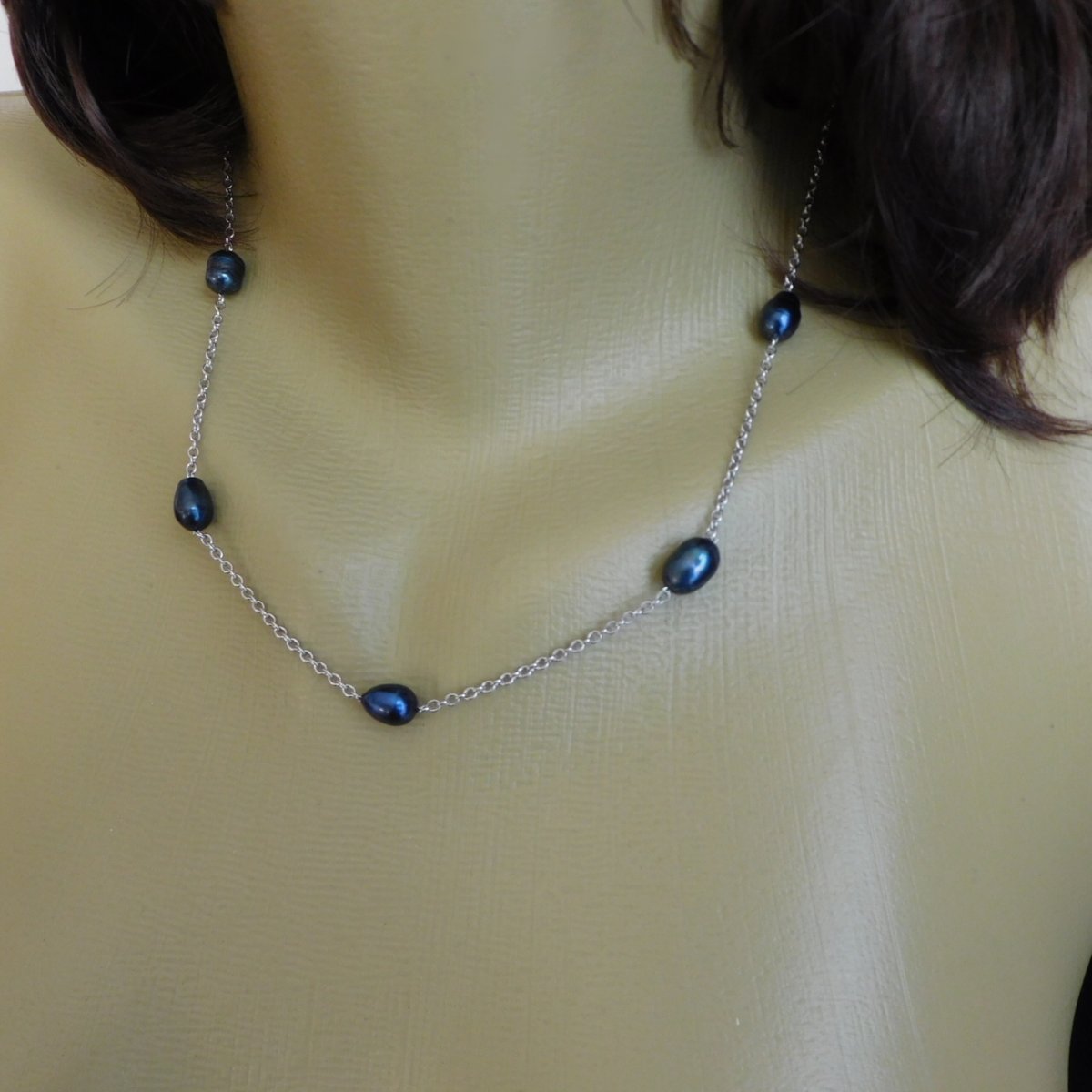 Náhrdelník z kvalitního nerezu, zdobí je tmavé říční perly