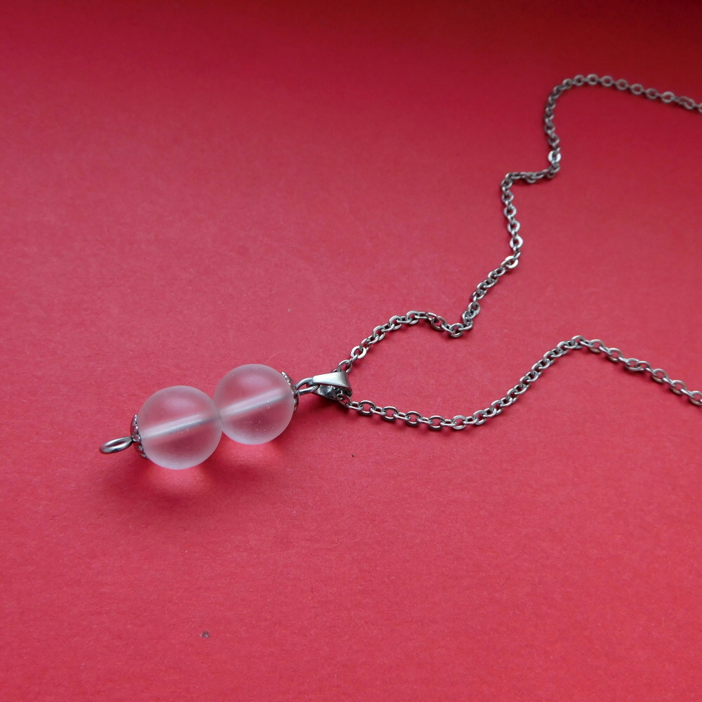 Krásný nerezový náhrdelník s kuličkami pískovaného křišťálu....