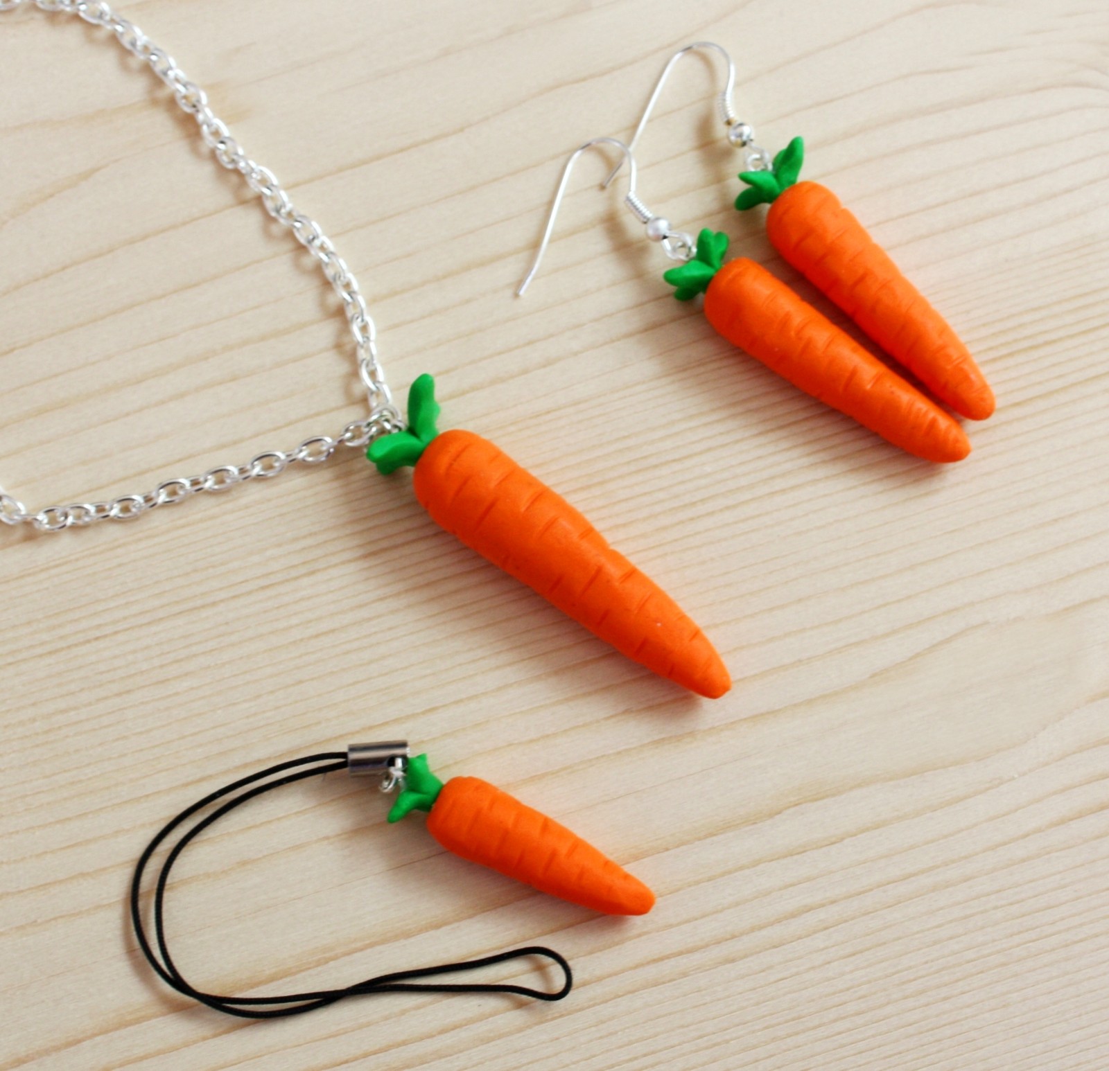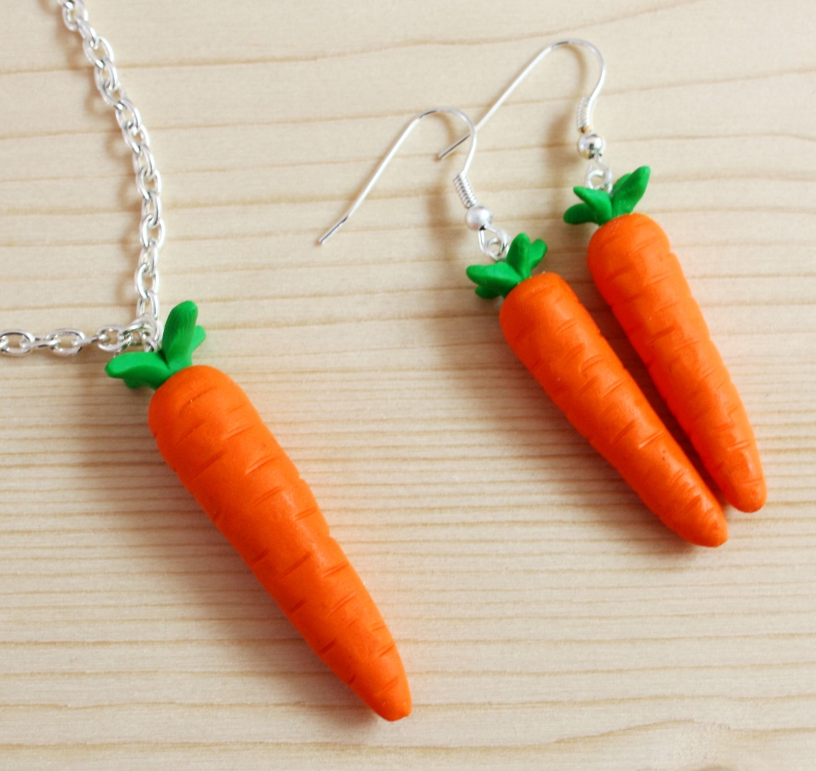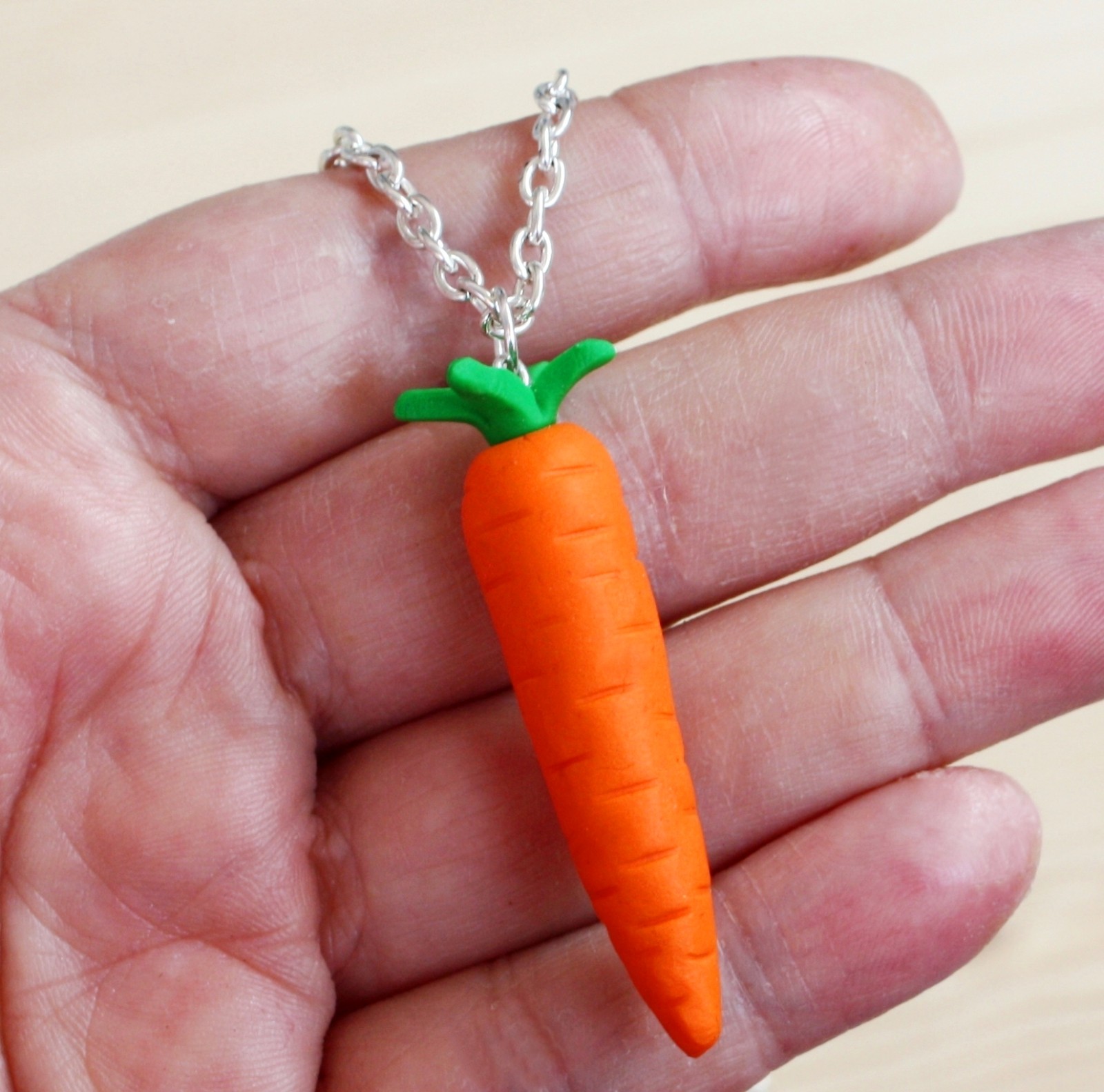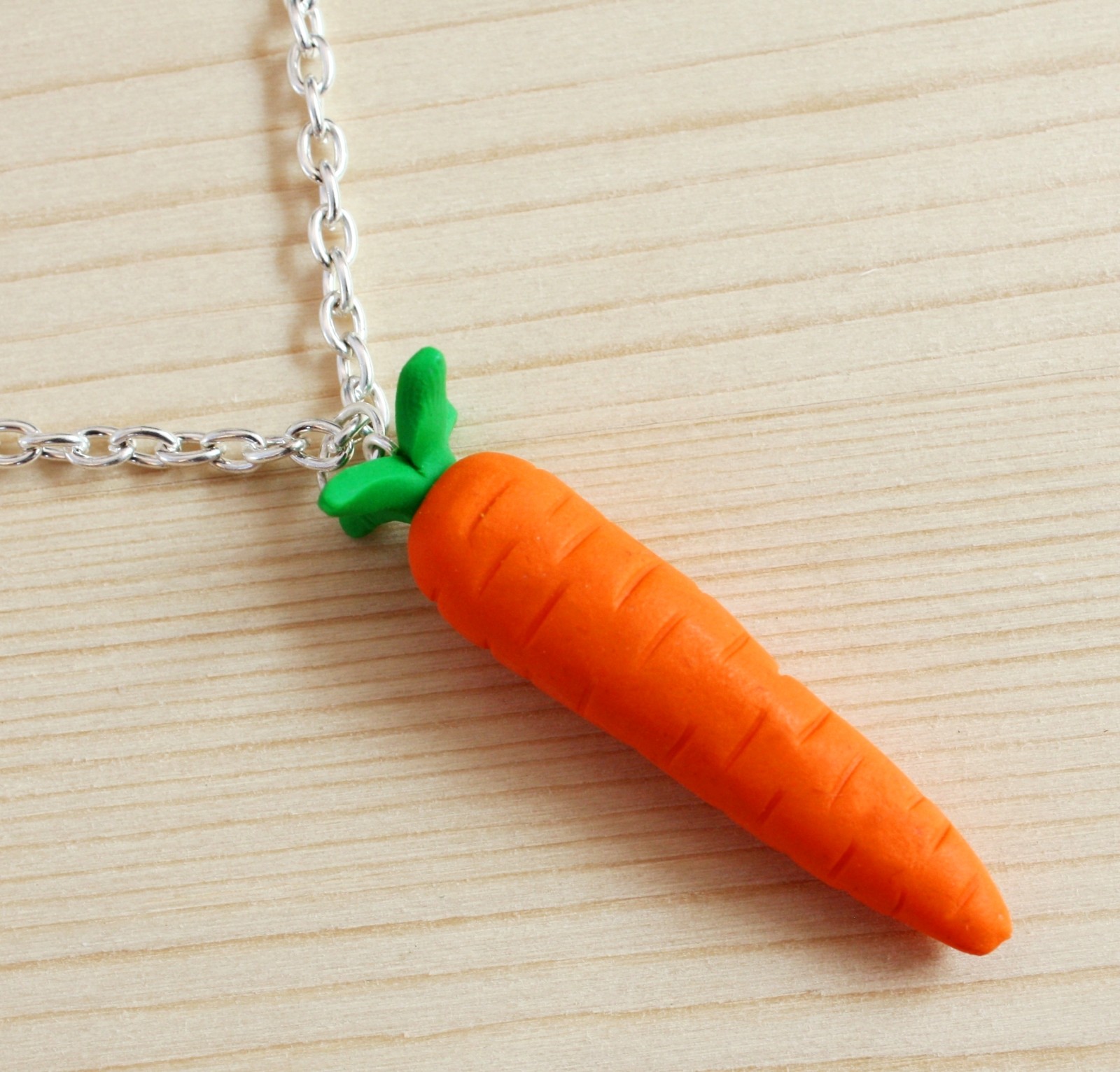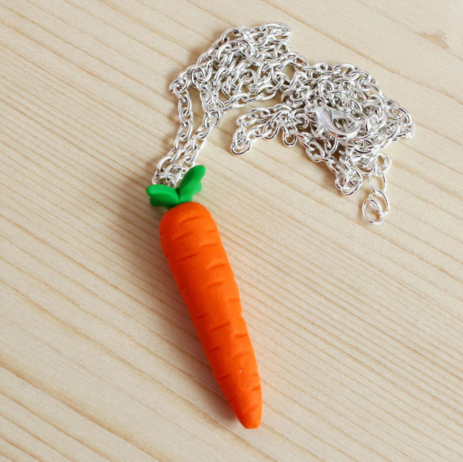 modelovaný šperk z polymerové hmoty ve tvaru mrkve,na stříbrném bižuterním řetízku v délce 50 cm + 4 cm prodlužovací řetízek
