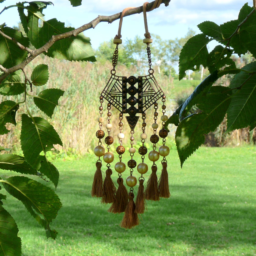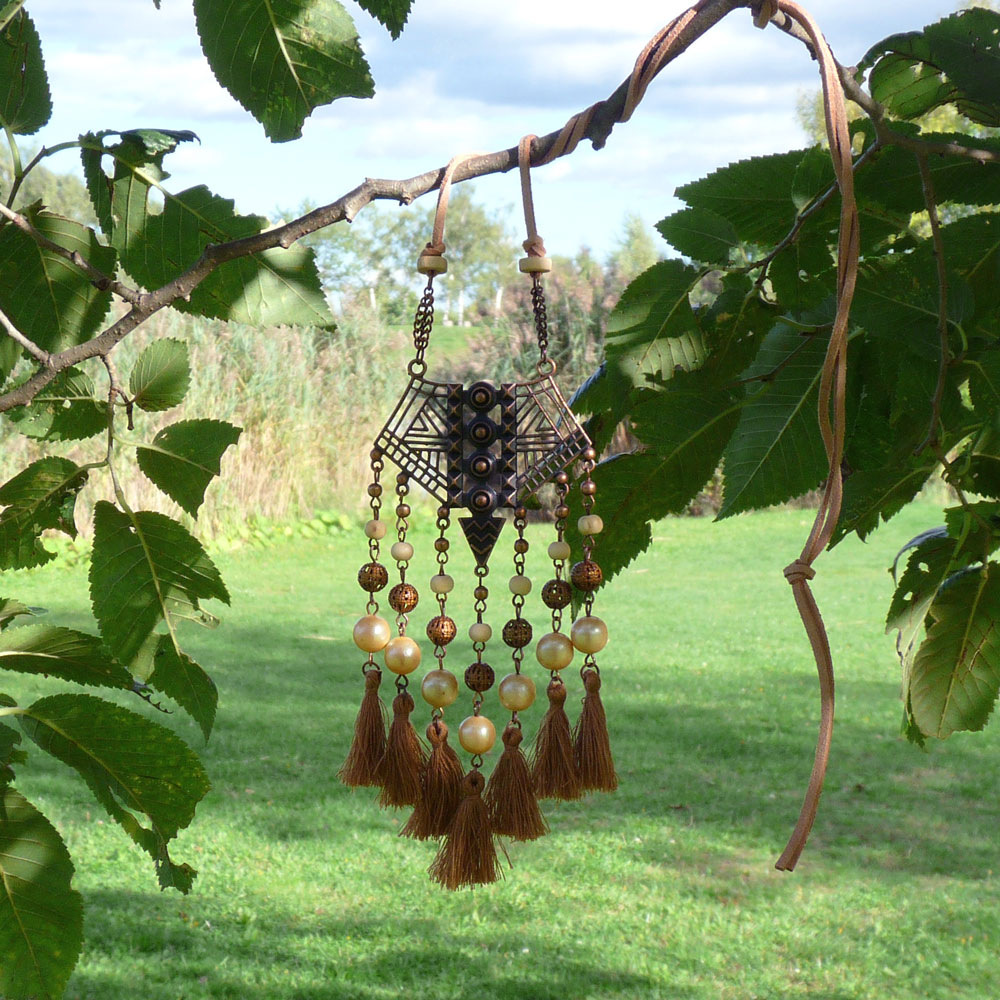 Korálkové závěsy jsou zakončeny hnědými střapci