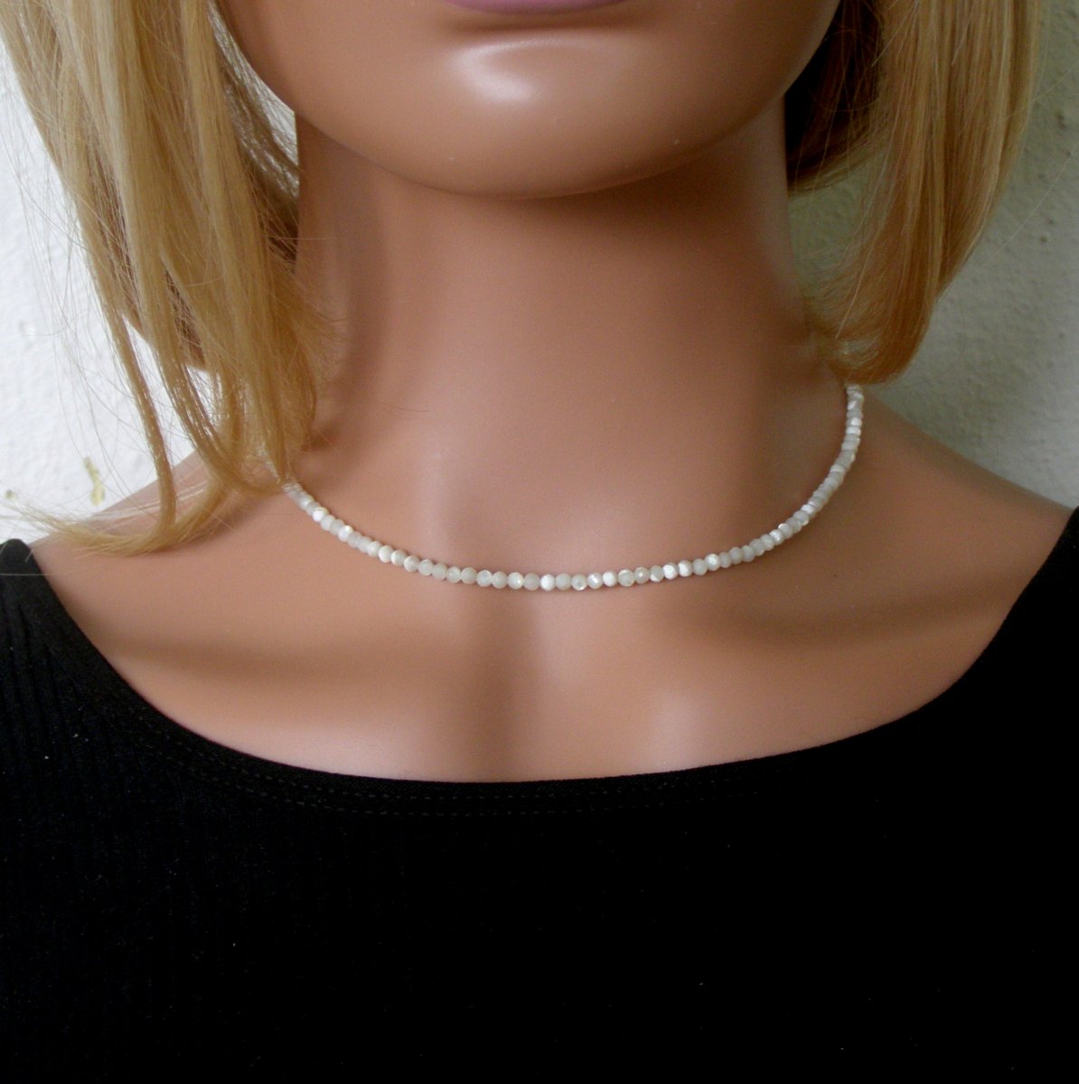 Krátký náhrdelník z přírodní, broušené perleti (mother of pearl).