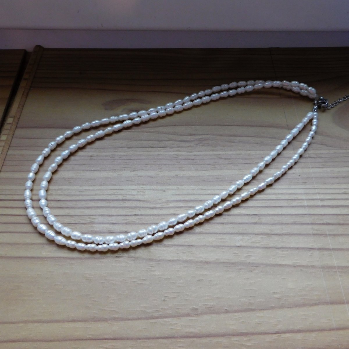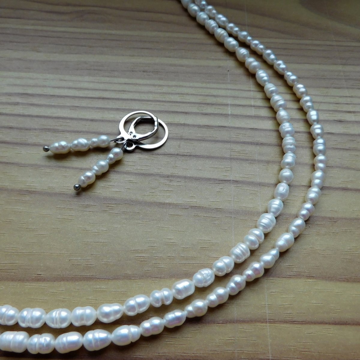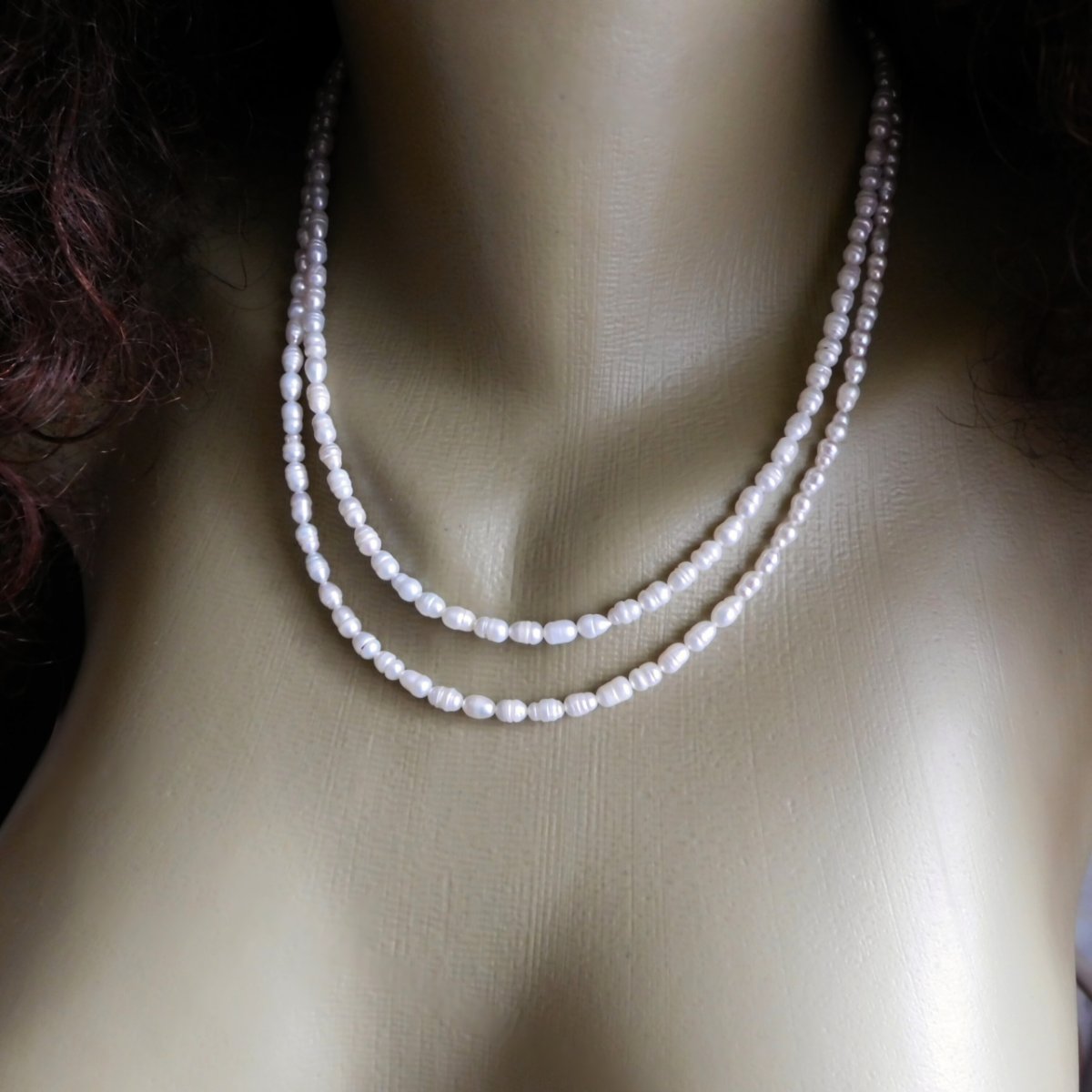 Náhrdelník, dvě řady, vyrobený z malých oválných nepravidelných pravých bilých perliček - velmi pěkné a oblíbené