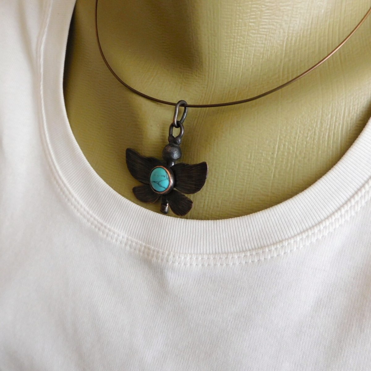 Zavěšeno na měděné obruči, je v ceně, pokud si budete přát kůži nebo měděný řetízek, napište, vyměníme...