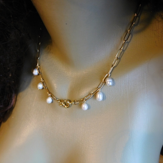 Komplet celé z nerezu, ..zlaté provedení... zdobí ho malé bílé říční perly
