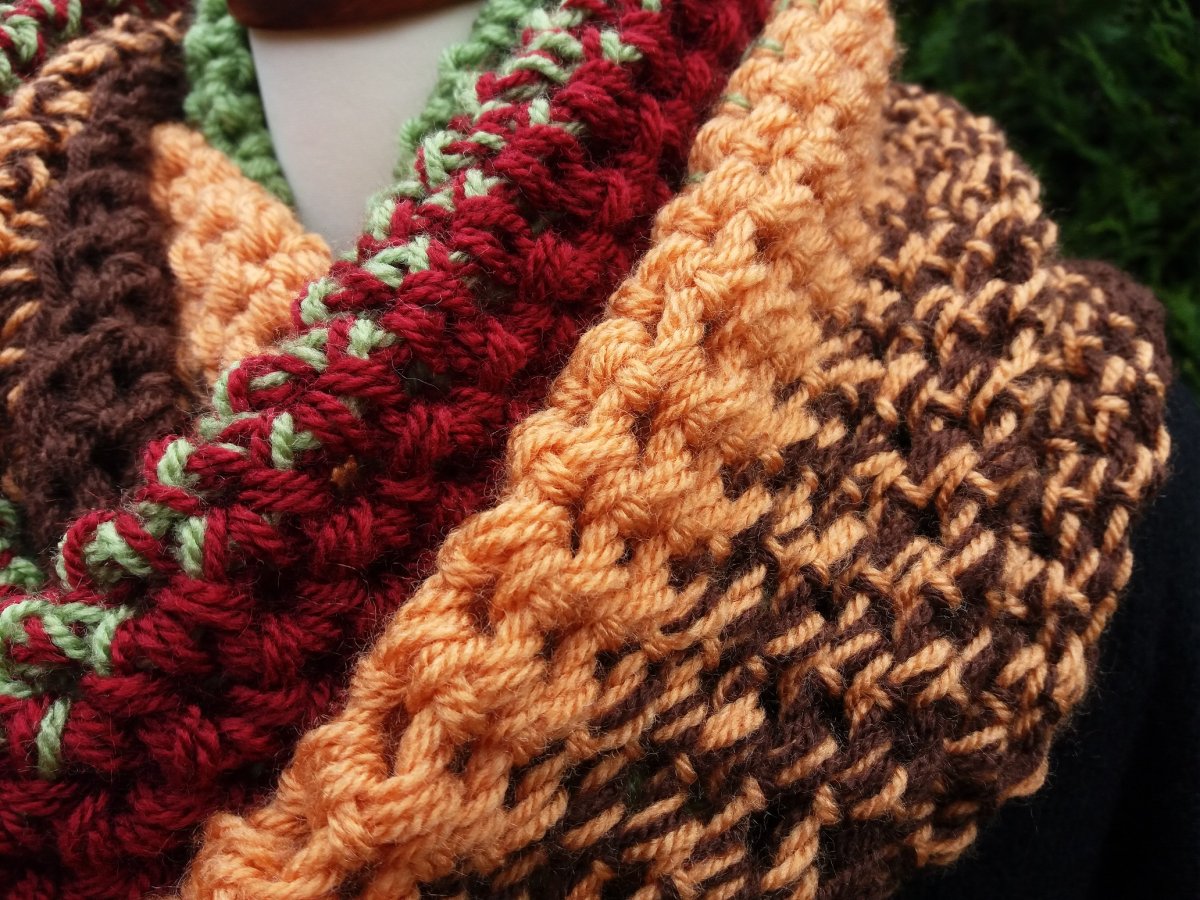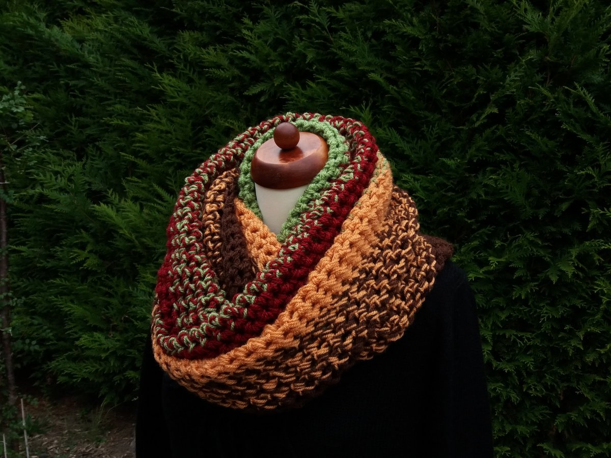 Nákrčník je vyroben z dvojité akrylové příze, volnou technikou háčkovaný, celkově moc příjemný, měkoučký, nekousavý, poddajný.