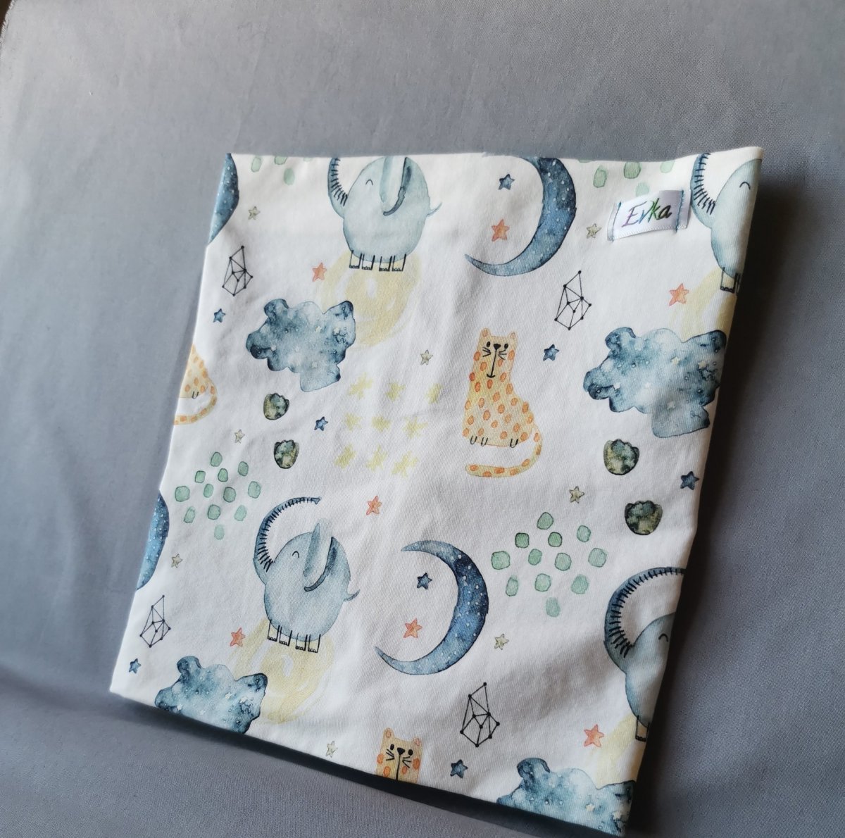 Materiál: Elastický bavlněný úplet. Vzor Snoozy. 95% bavlna a 5% elastan.