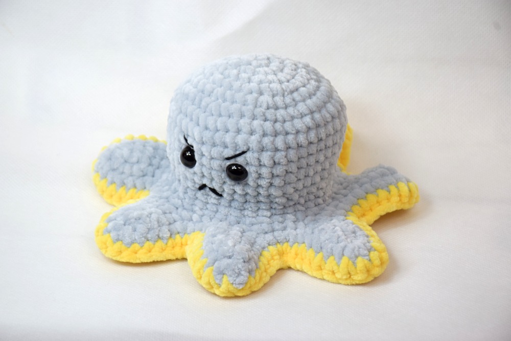 Náladová chobotnička - z jedné strany veselá, pak se zatlačí na hlavičku a převrátí se a z druhé strany je smutná