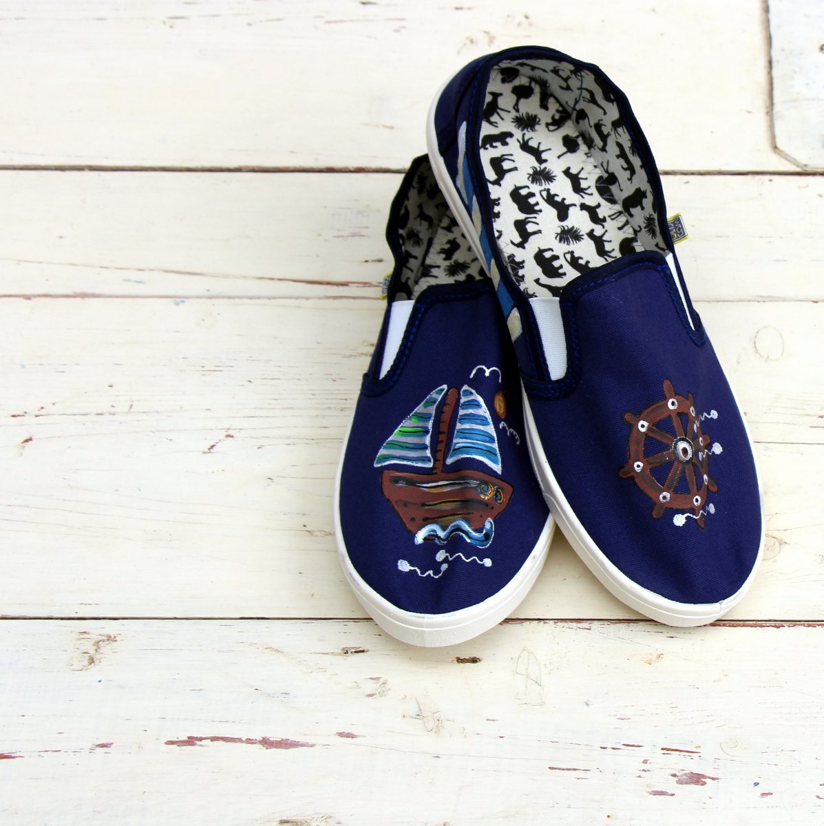 Ručně malované tmavě modré botičky, tenisky, plátěnky - bez tkaniček, všitá guma bezvadně drží na nožce, UNISEX - vhodné pro ženy i muže!