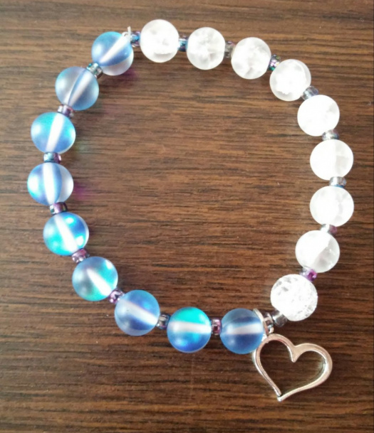 Náramek z minerálnich korálků,navlečený na gumičce.
