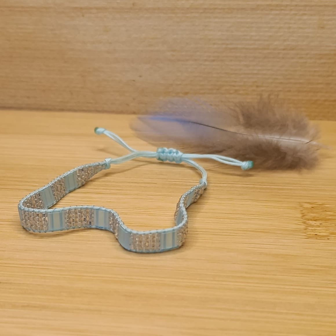 Náramek tkaný na stavu z TILA korálků, rokajlu, nylonové šňůrky a nymo nitě.