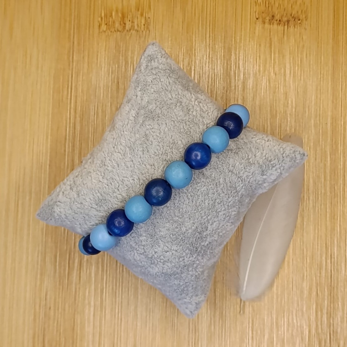 Náramek navlékaný z dřevěných korálků a tkaný technikou macramé z nylonové šňůry.Korálky jsou průměru 4, 8 a 10 mm.Neobsahuje žádný kov - vhodný pro alergiky.