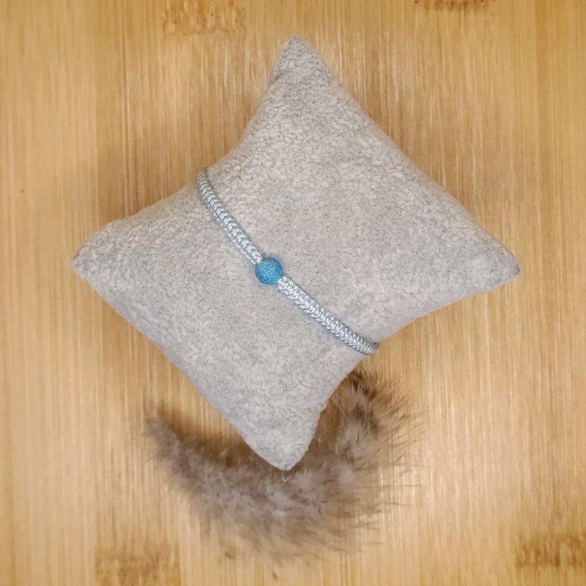 Náramek tkaný technikou macramé z C-lonu odstín sky blue, světle modrý dračí achát.Posuvné zapínání.Náramek je bez kovů - vhodný pro alergiky.