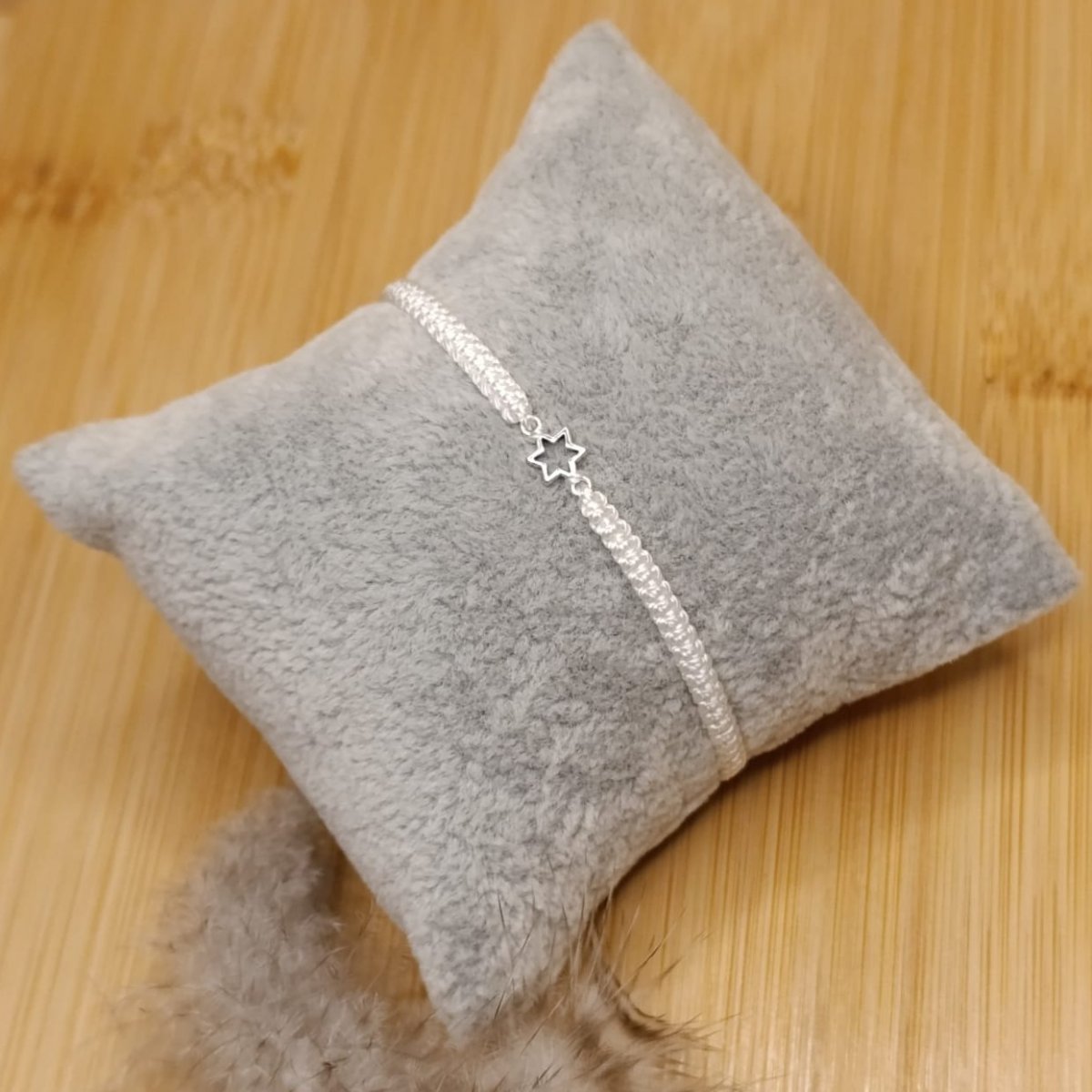 Náramek tkaný technikou macramé z C-lonu odstín white, kovová hvězdička.Posuvné zapínání.