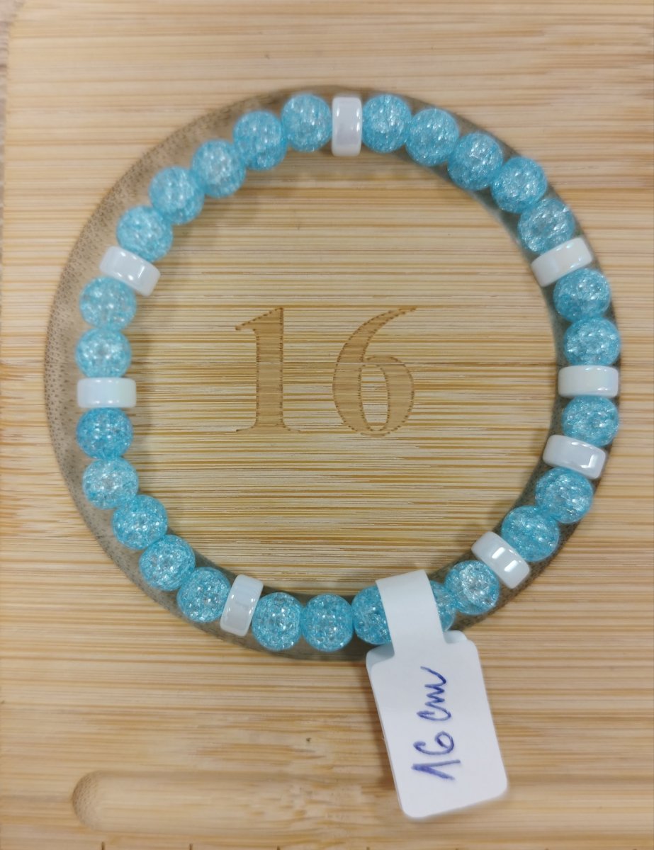 Barva: světle modrá až tyekysová - práskané sklo, bílá