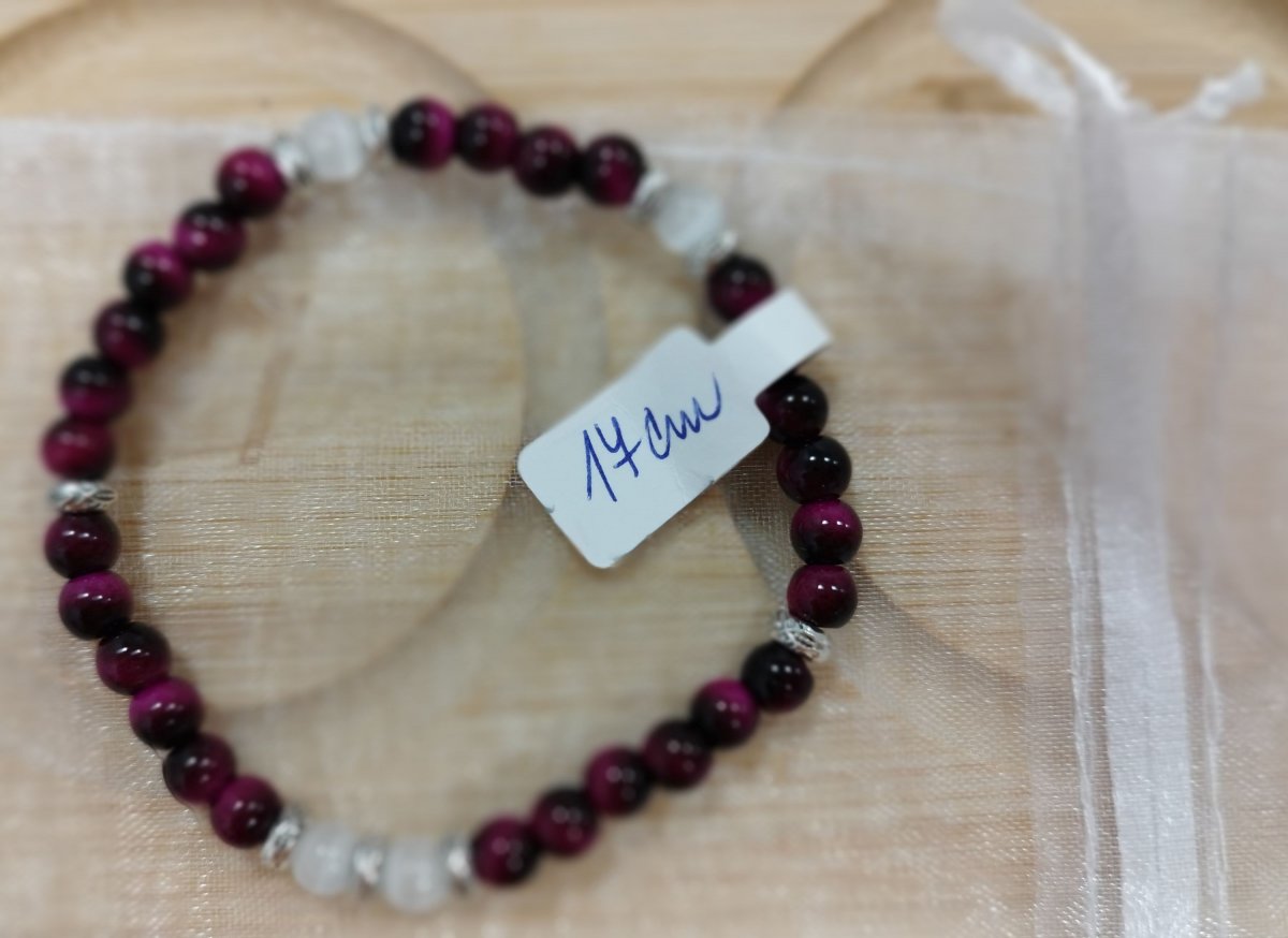 Barva: odstíny velmi tmavé růžové až bordó, kombinace s bílou, kovové komponenty z bižuterního kovu