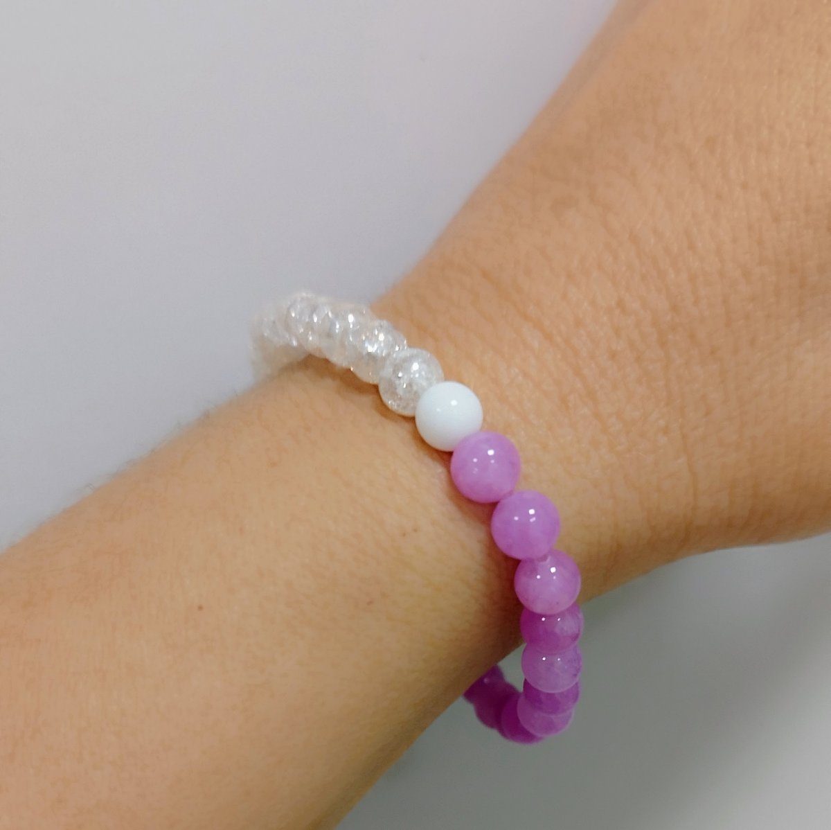 Barva: fialková v kombinaci s bílou a práskané sklo s AB efektem