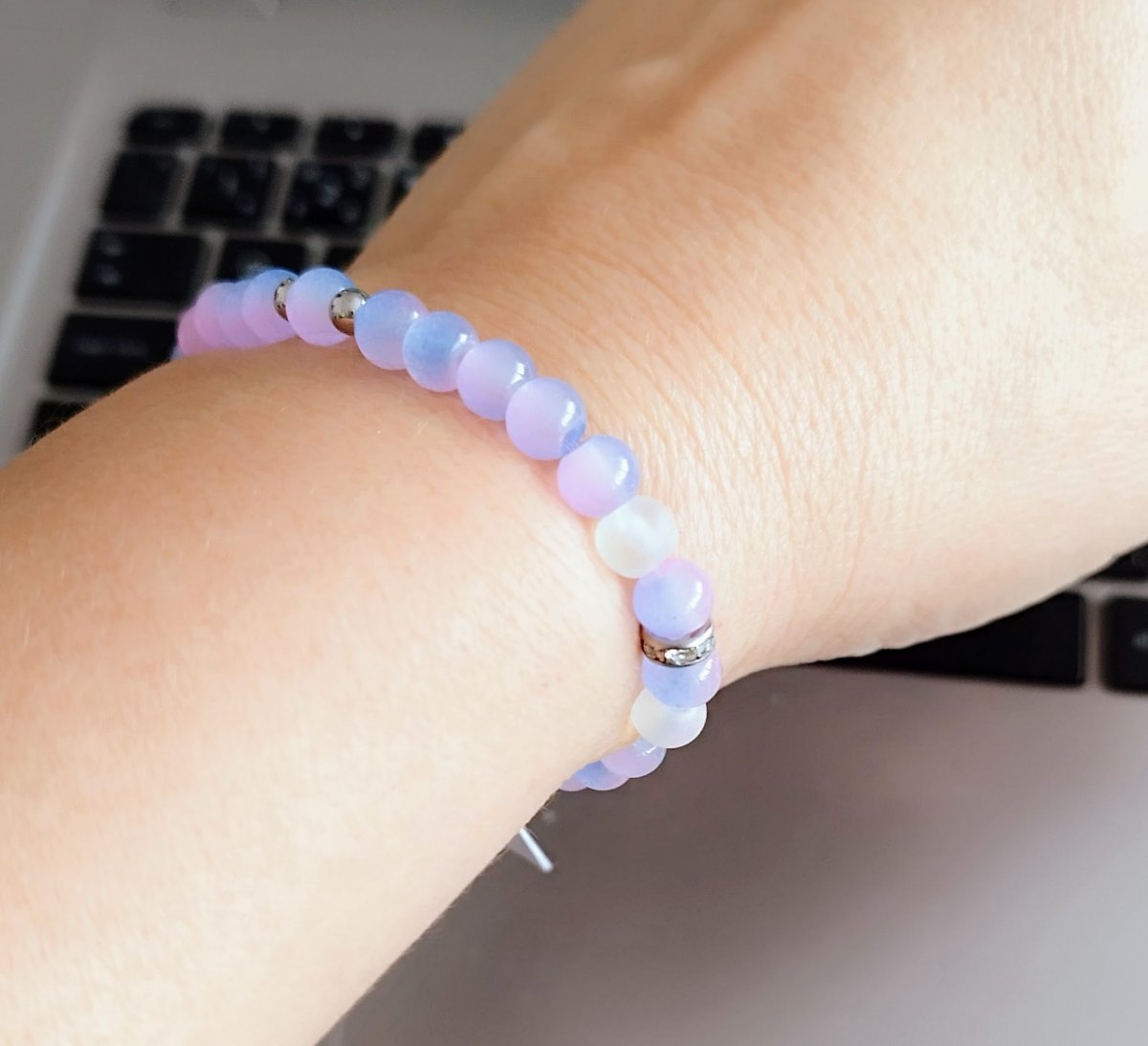 Barva: duhová s nádechem modrofialové, kovové komponenty nerez ocel, velice jemný, něžný