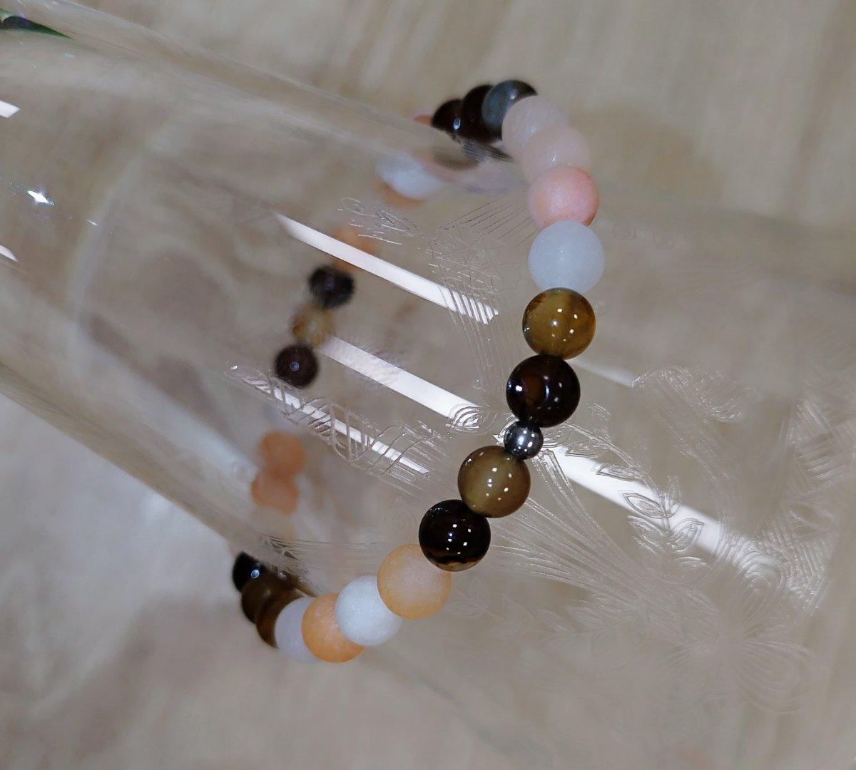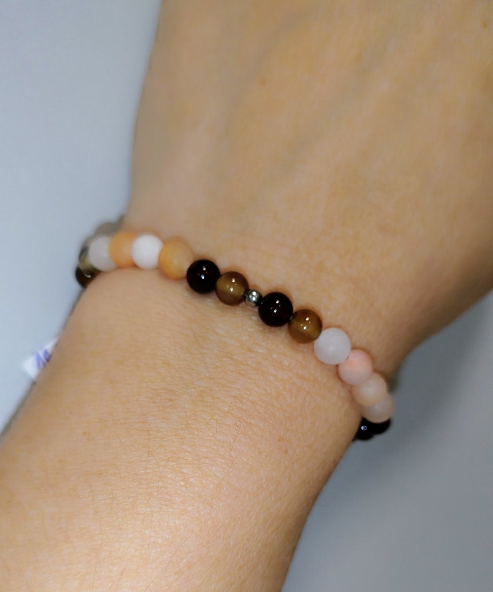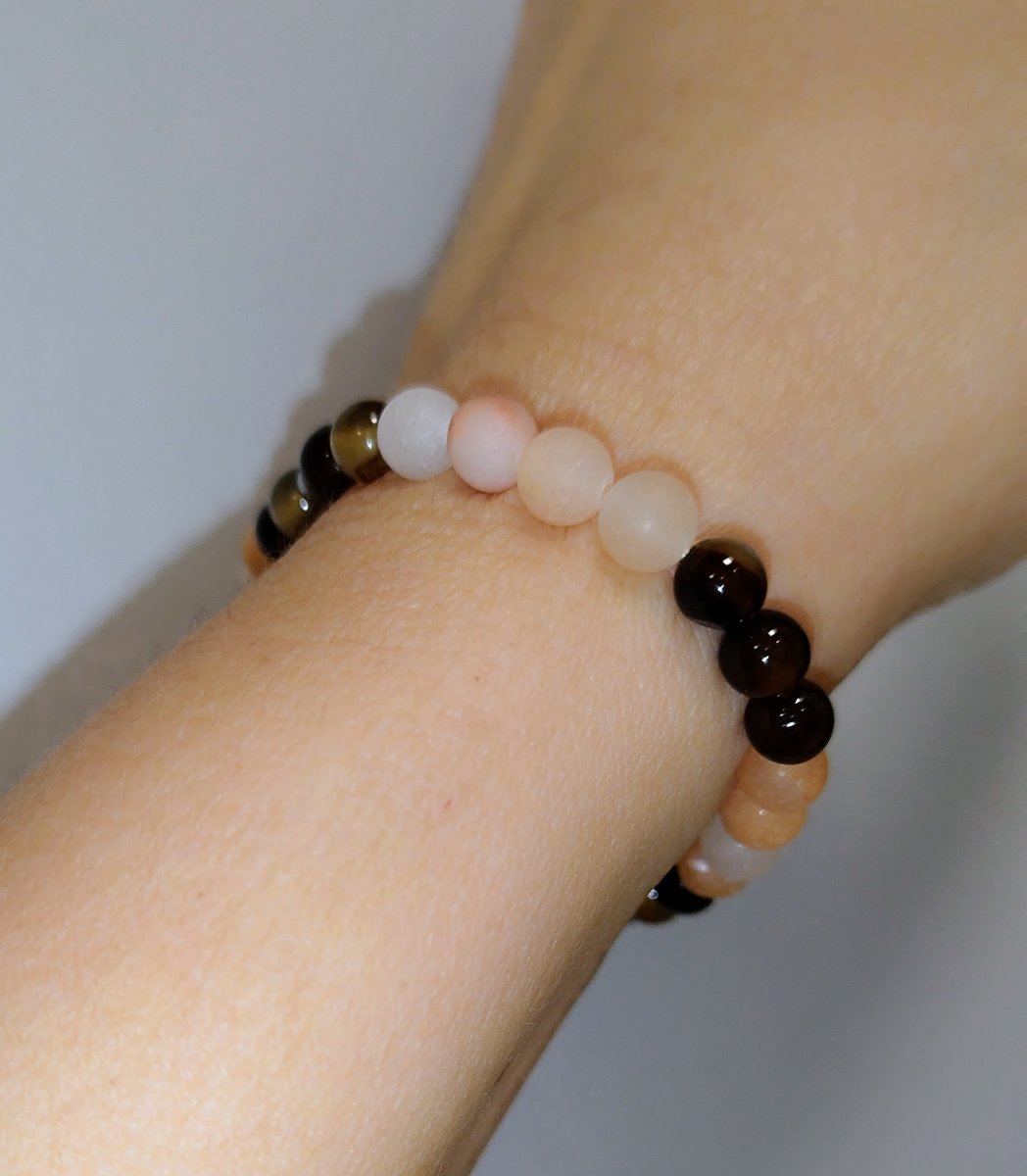 Barva: Odstíny hnědé přes béžovou až po skoro bílou, kovový korálek nerez ocel