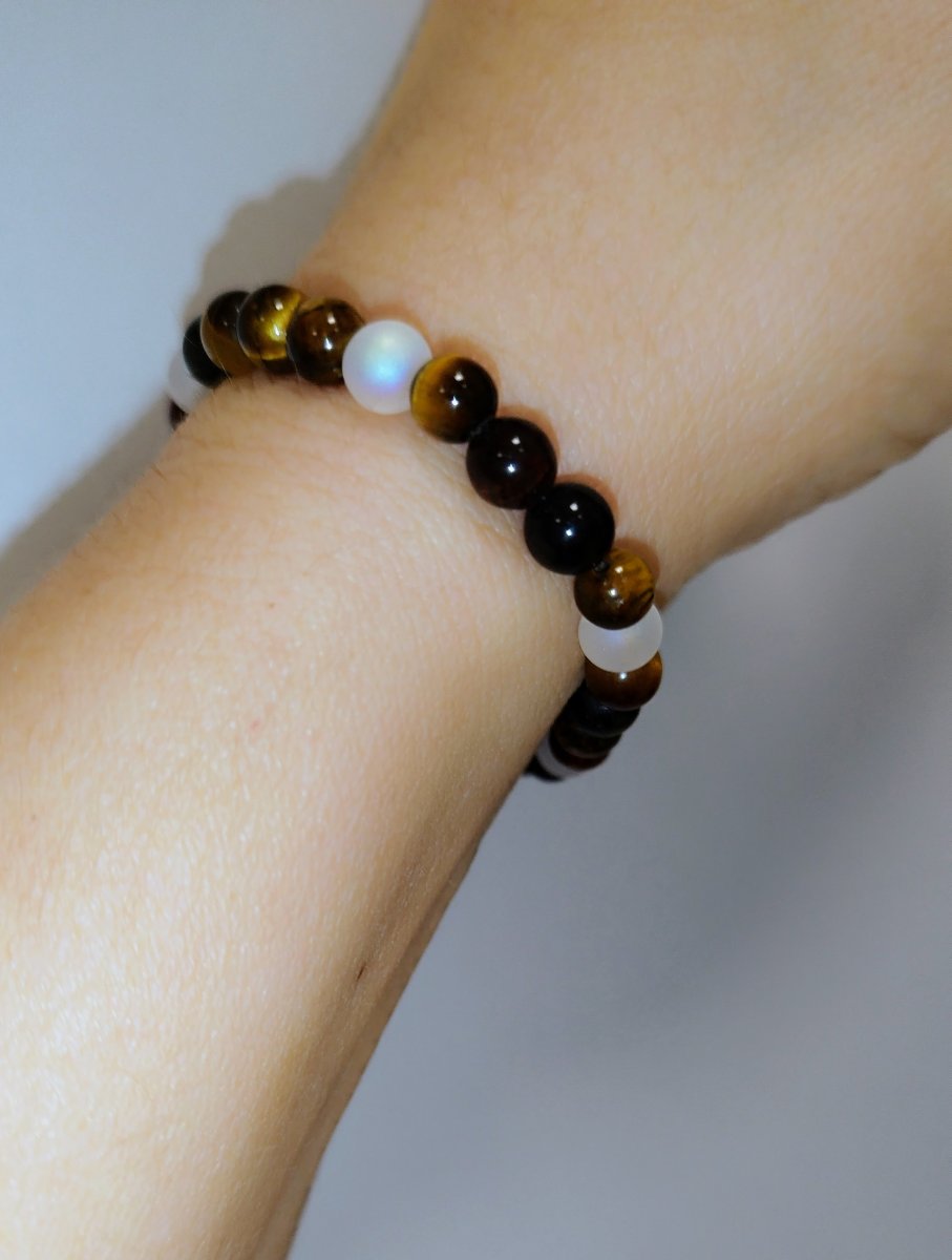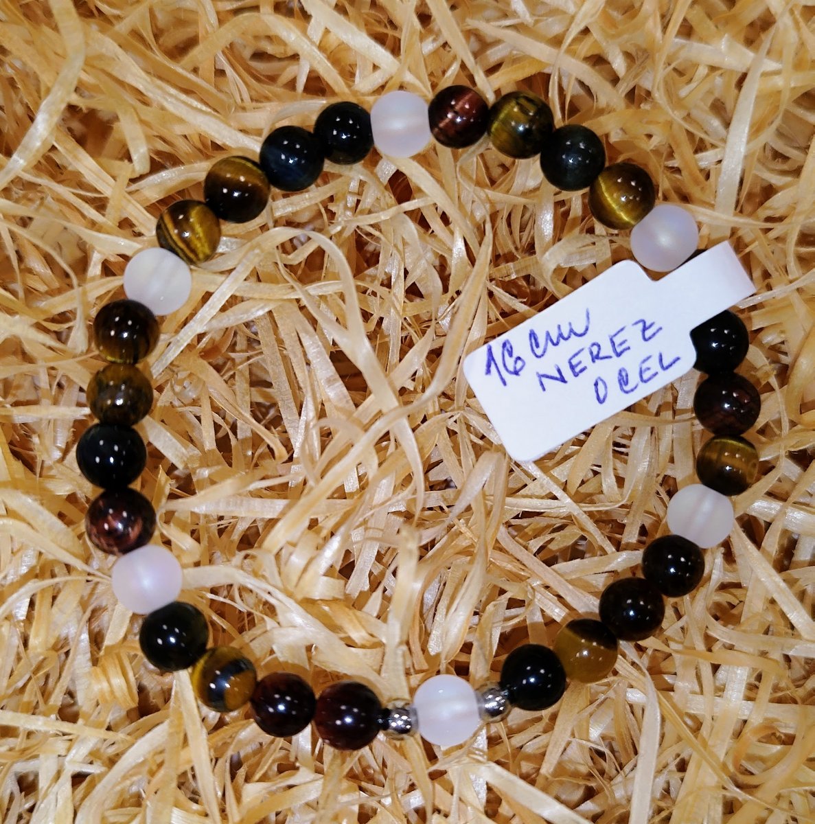 Barva: kombinace duhové hmědé a matné bílé, kovové korálky nerez ocel