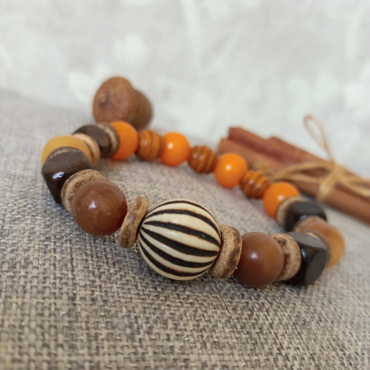 Náremek z korálků z kořene Bodhi 10mm ,rondelek z kokosových skořápek , dřevěných korálek a akrylové velké korálky.