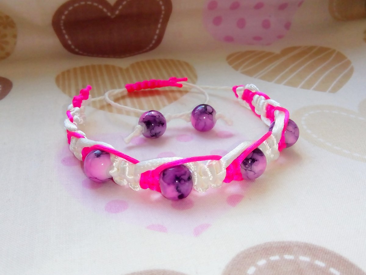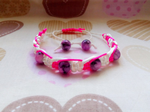 Nastavitelná velikost, zatahovací. Vyrobeno z textilních šňůrek s korálky.