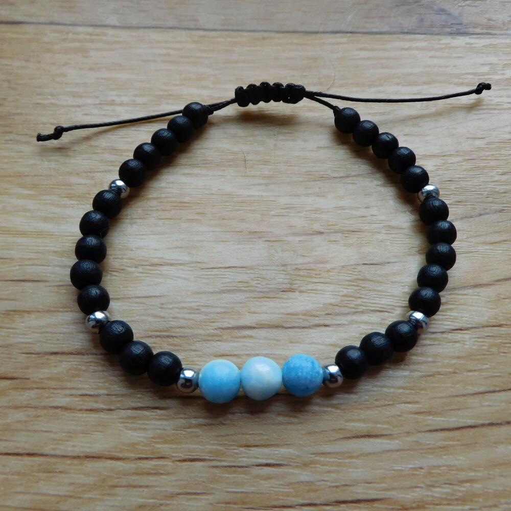 Velikost dřeva 0,5 cm , larimar 0,6 cm