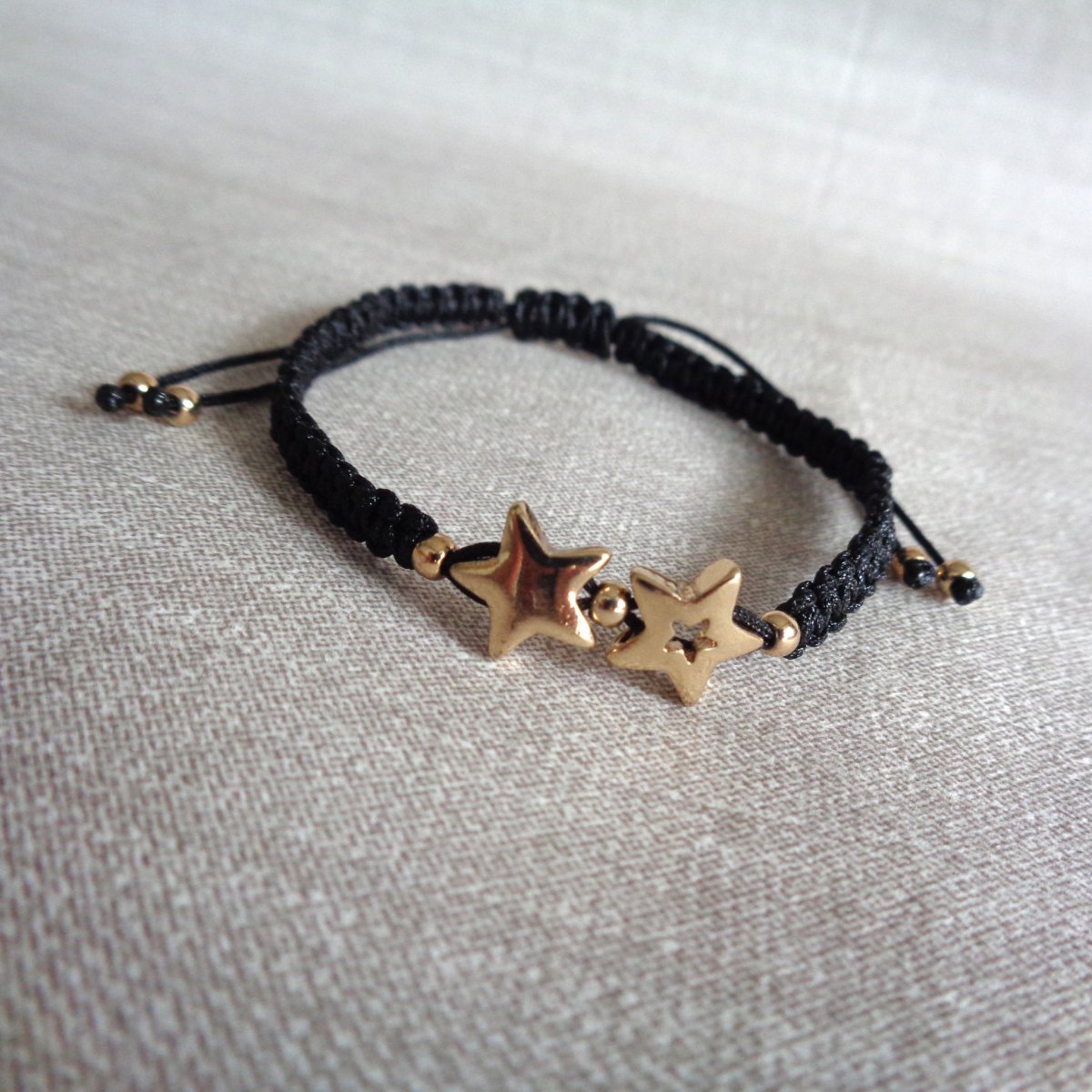 ... shamballa náramek z černé nylonové šňůrky a zlatých hvězdiček, doplněný je drobnými zlatými korálky
