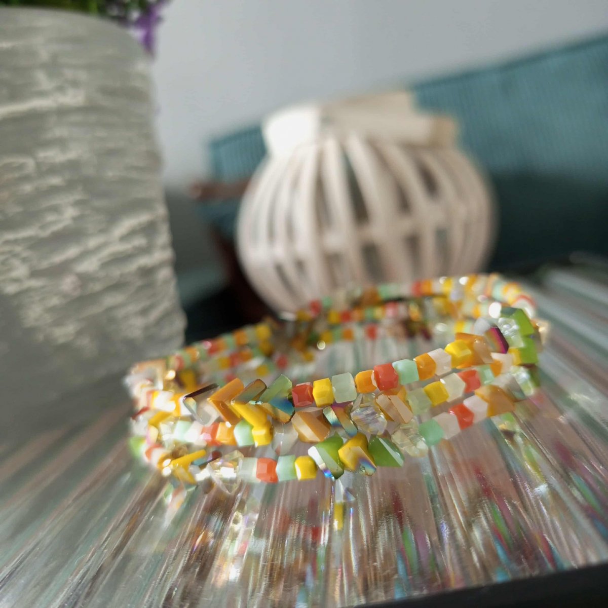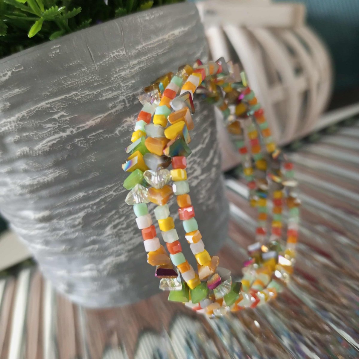 Náramek je ze skleněných kostiček 2mm a skleněných tromlovaných úlomků cca 3mm