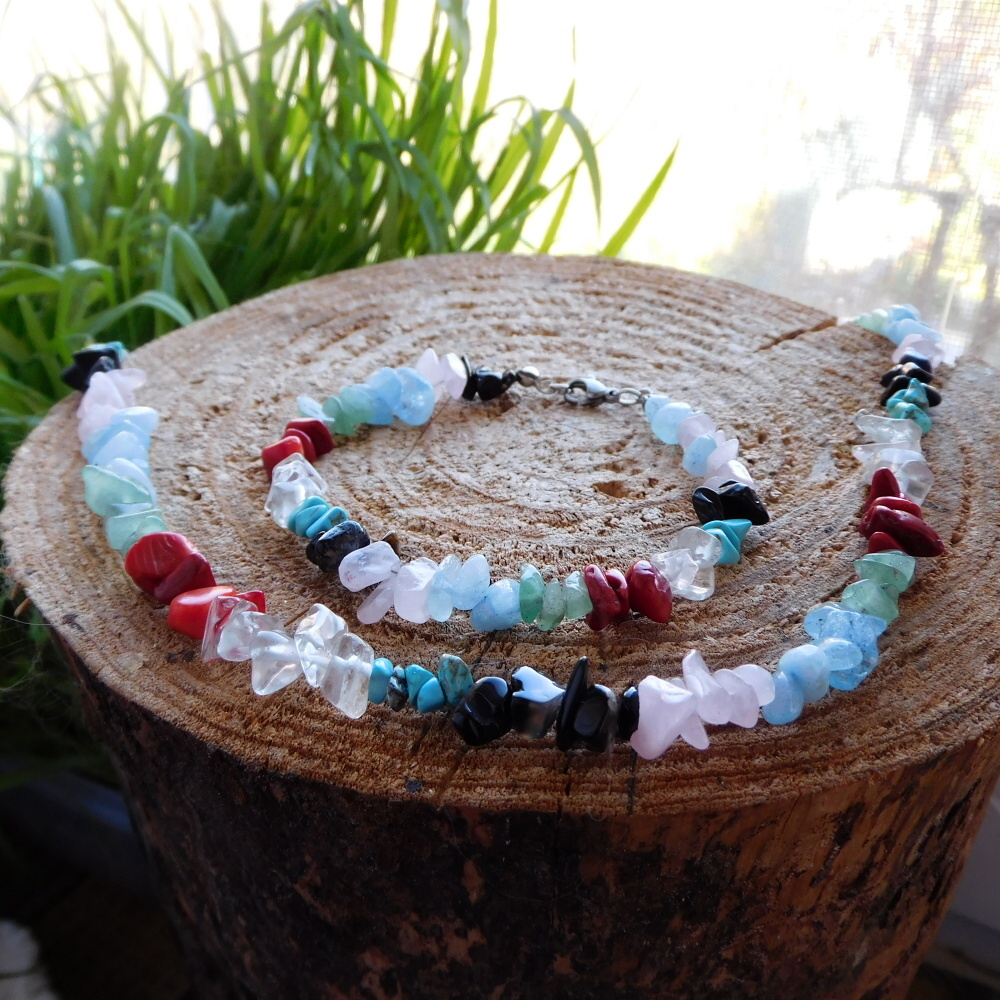 Náramek je vyrobený ze sekaných polodrahokamu, ruzné druhy, .Na jarní a letní dny jako dělaný.....