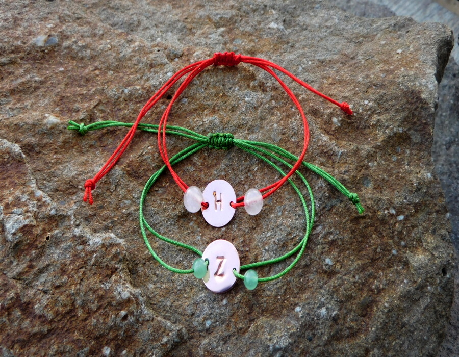 Písmena jsou ručně ražená na měděné placce, vč. dírek.....k tomu na doplněné avanturinem,malinké kuličky