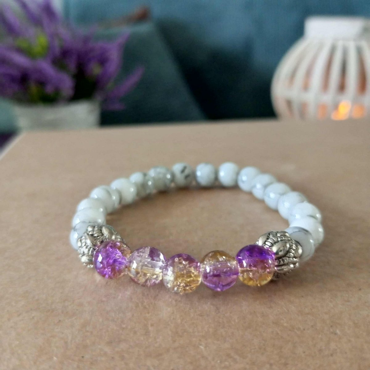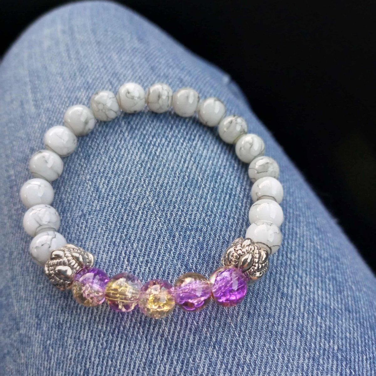 Náramek ze skleněných korálek 8mm , doplněný kovovými rondelkami.