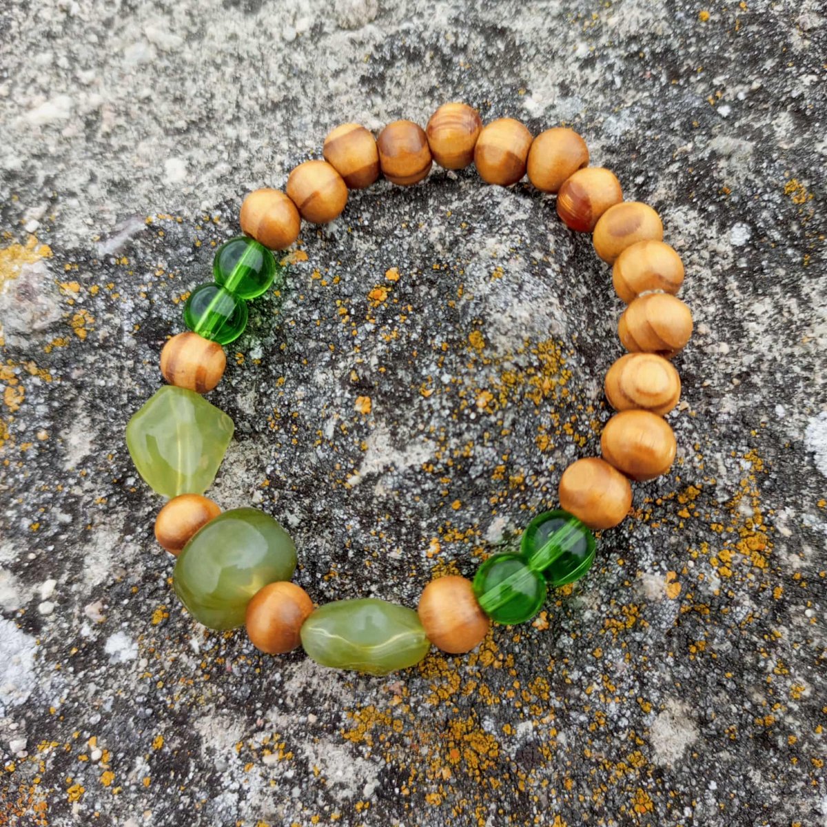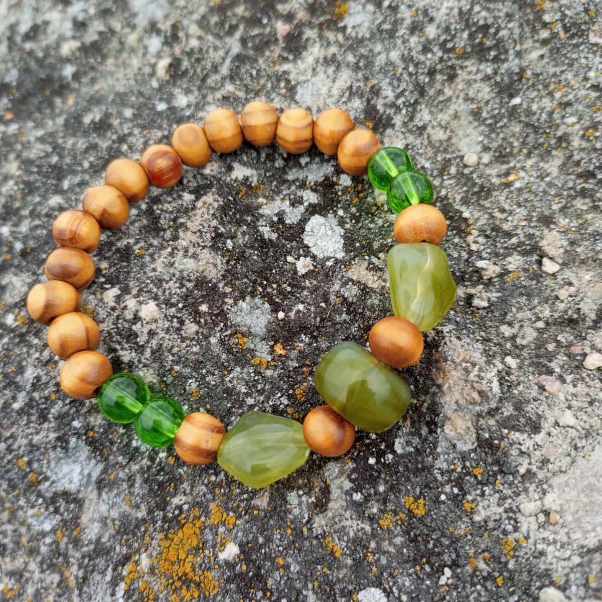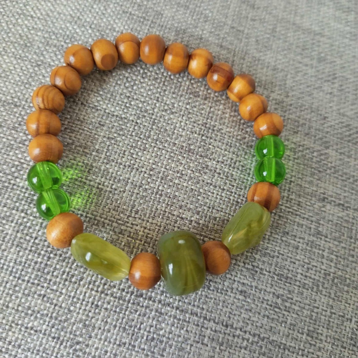 Náramek z akrylových, dřevěných a skleněných korálků - kulaté korálky 8mm .