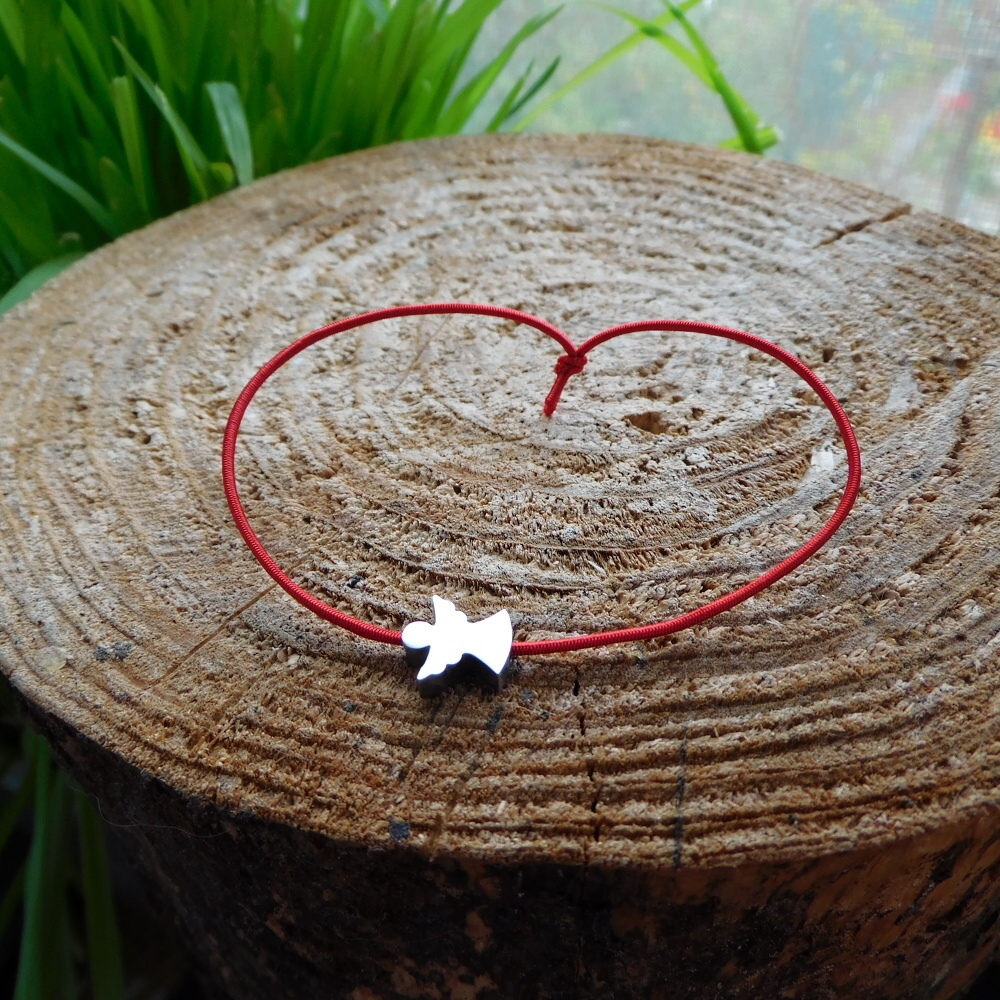Nerezový andílek malý, navlečený jako náramek na ruku.....