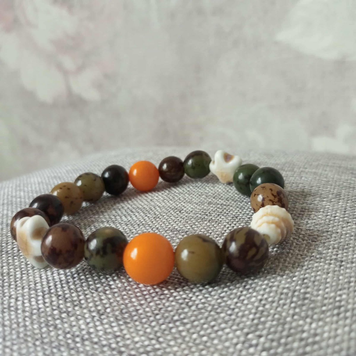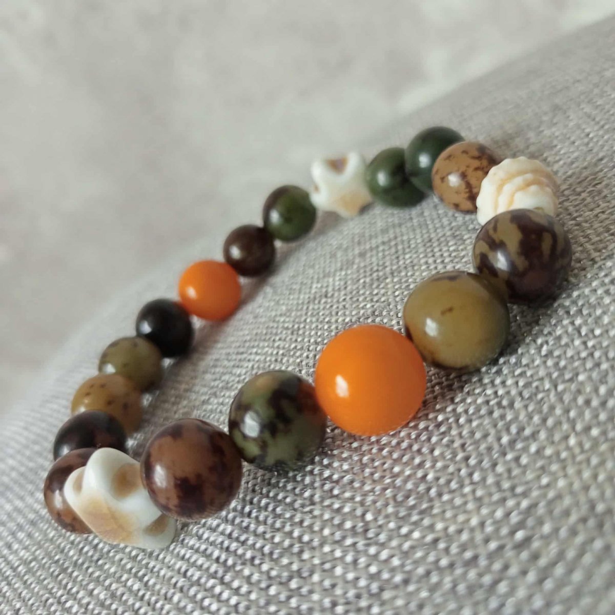 Náremek z korálků z kořene Bodhi . Korálky jsou velké 10mm s keramickými doplňky.