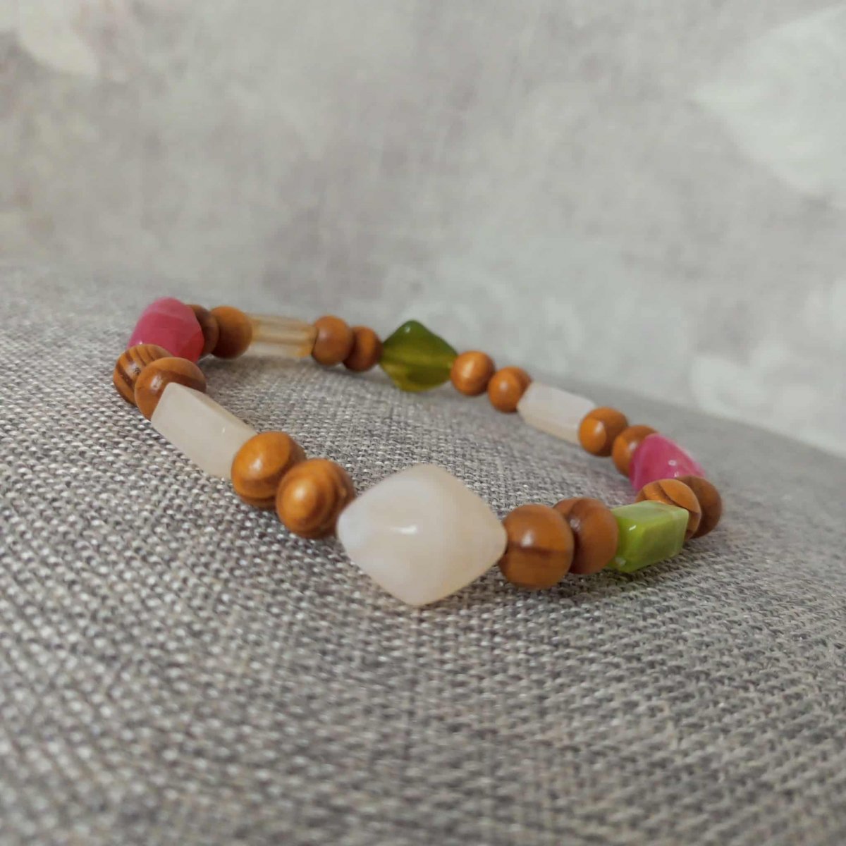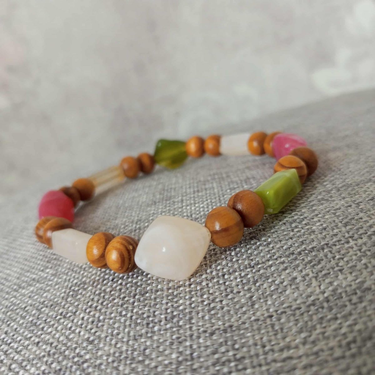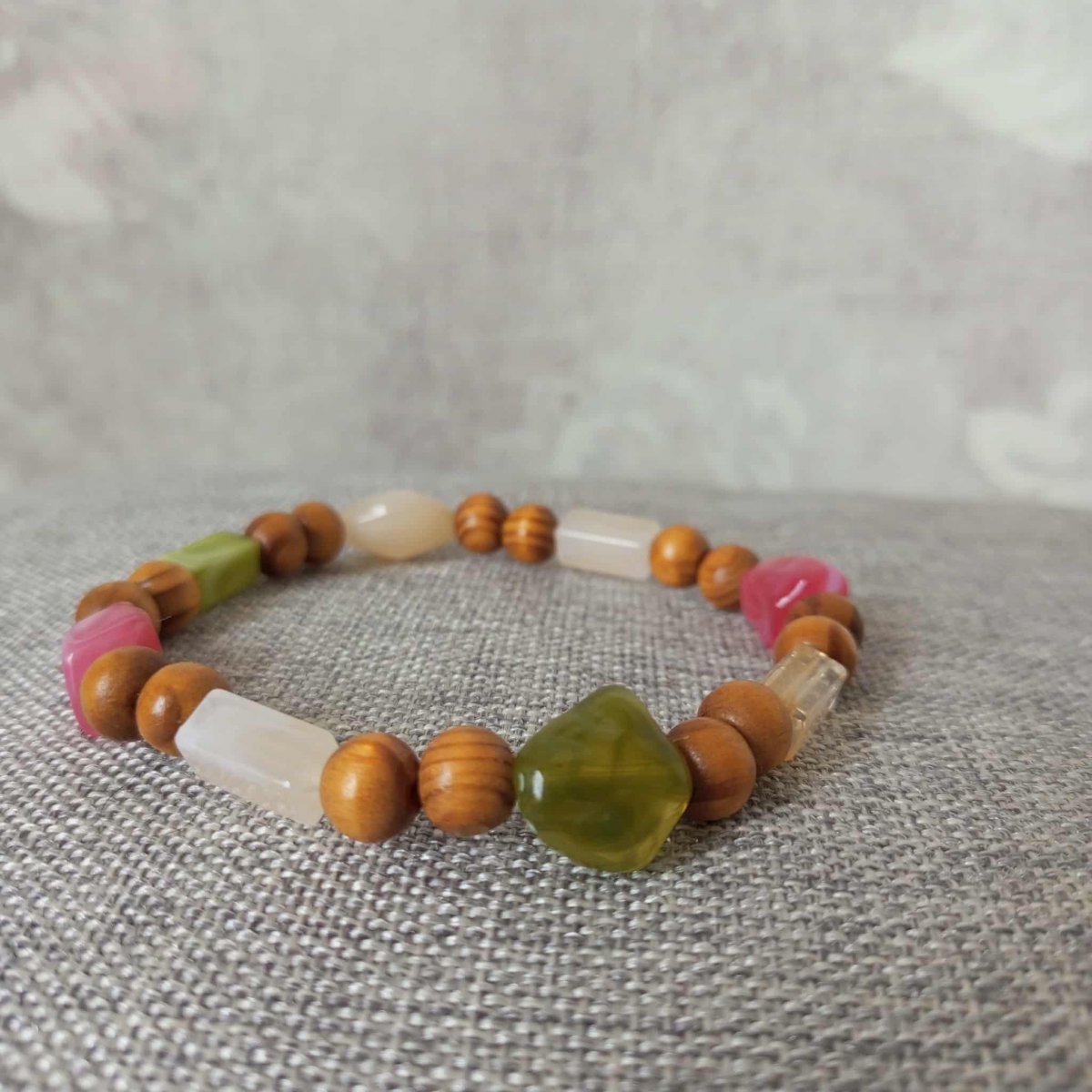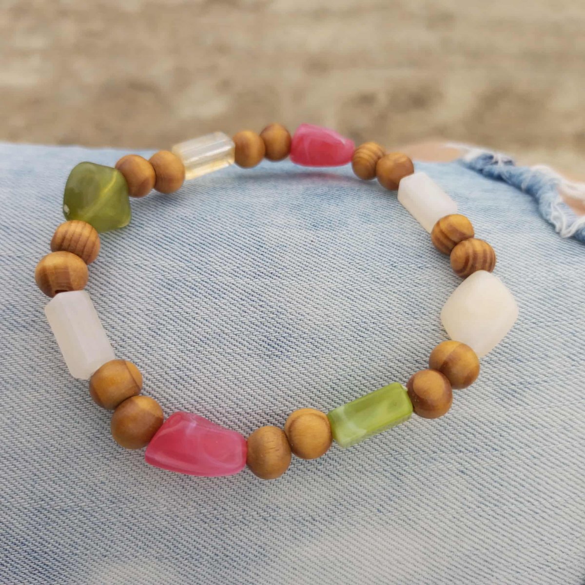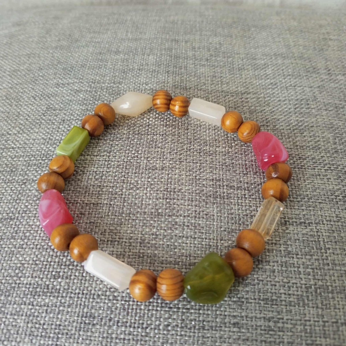 Náramek z akrylových a dřevěných korálků - kulaté korálky 8mm .