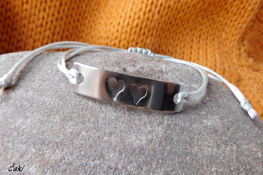 Nový typ náramku s nerezovou destičkou, na které jsou vyraženy 2 srdíčka - láska.......