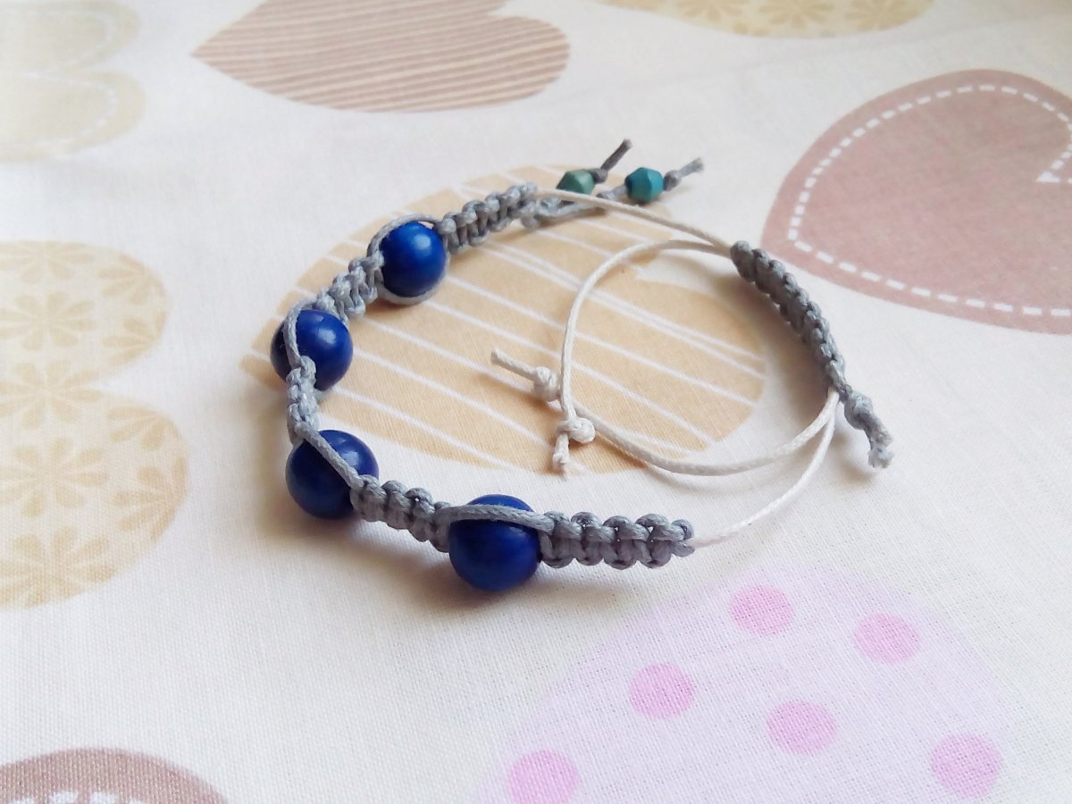 Nastavitelná velikost, zatahovací. Vyrobeno z textilní šňůrky s korálky.
