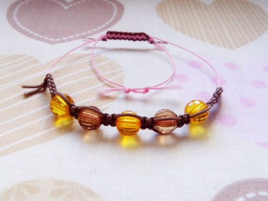 Nastavitelná velikost, zatahovací. Vyrobeno z textilních šňůrek s korálky.