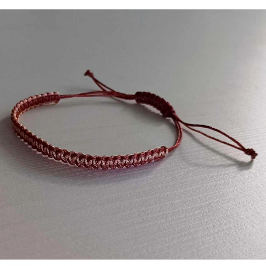 Náramek je vyrobený technikou Shamballa v kombinaci hnědé a béžové.