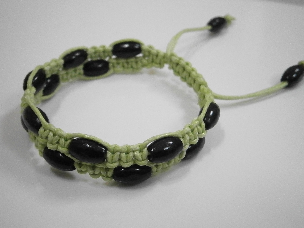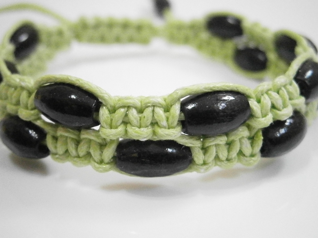 vyroben z dřevěných korálků a zelené voskované šňůrky, univerzální velikost