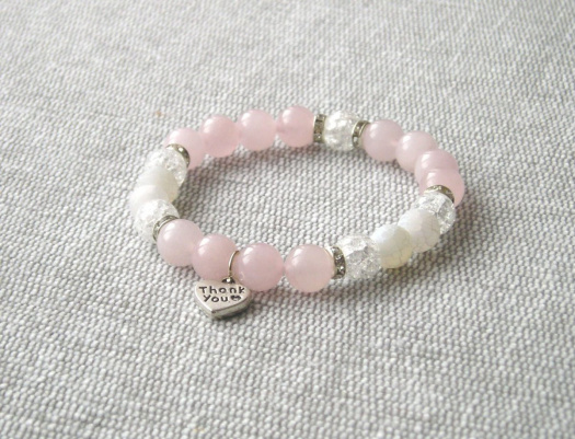 Dále jsem použila korálky a přívěsek ve tvaru srdce s nápisem Thank you, v barvě stříbra z bižuterního kovu.