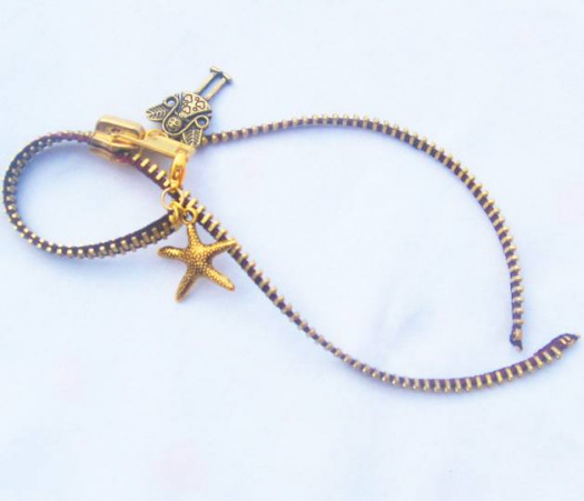 ruční, vlastní výroba, základní barva je hnědozlatá, zapínání na karabinku, zip lze rozepnout a tím zmešit objem a náramek bude hnedle vypadat zajímavěji......