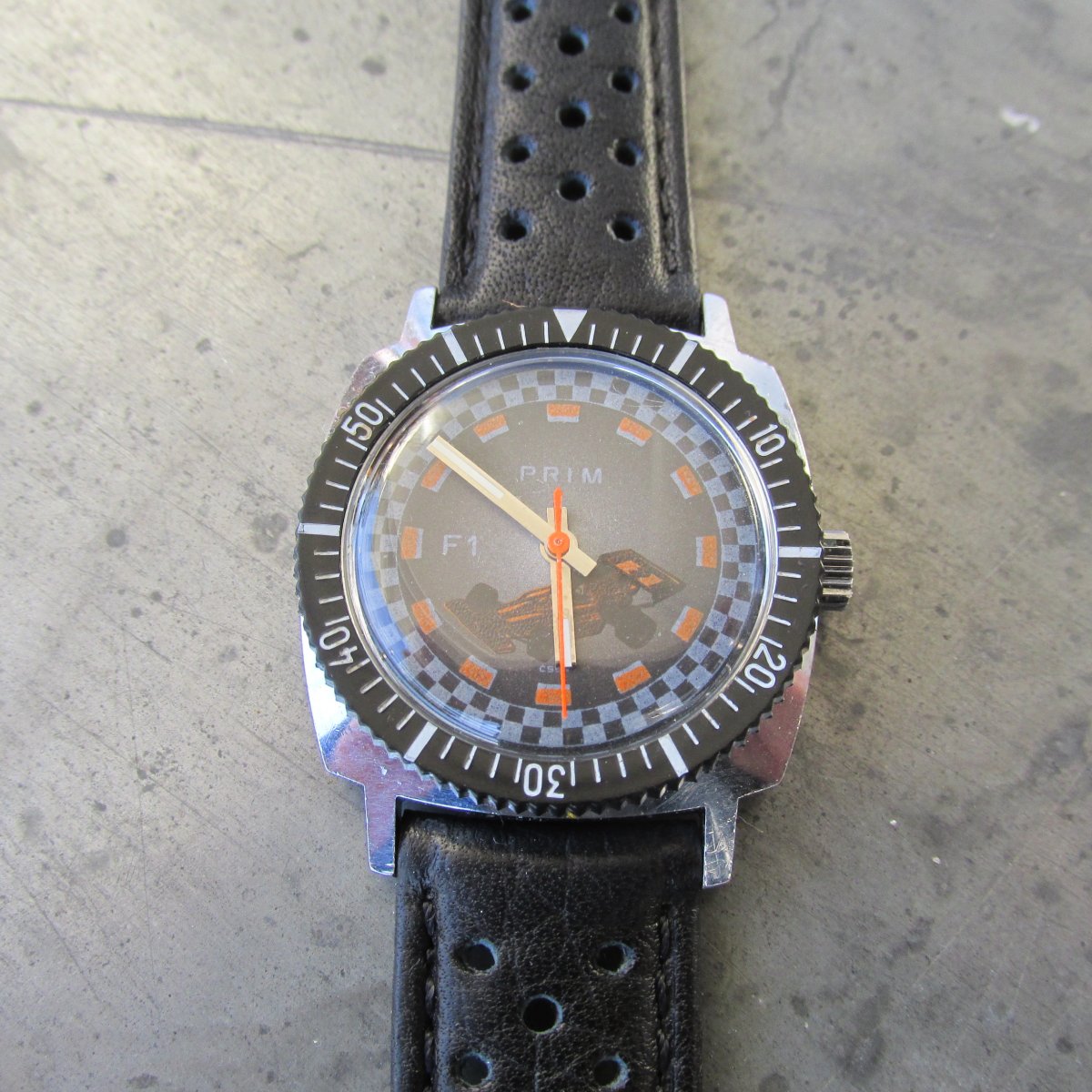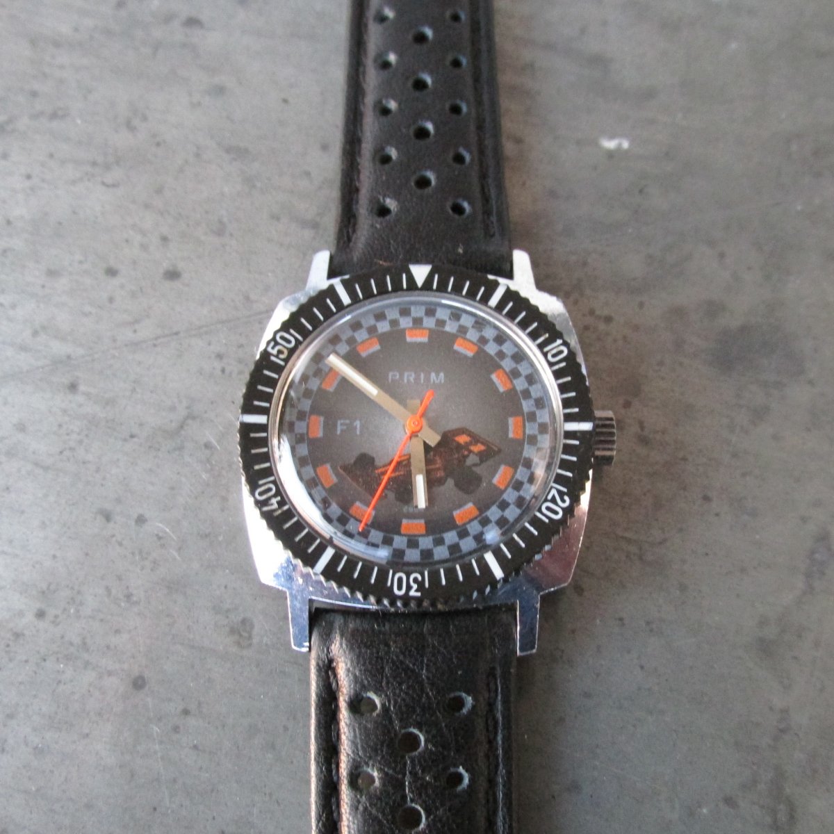 Mechanické retro elegantní hodinky Prim " Sport Formule 1", made in Czechoslovakia.
