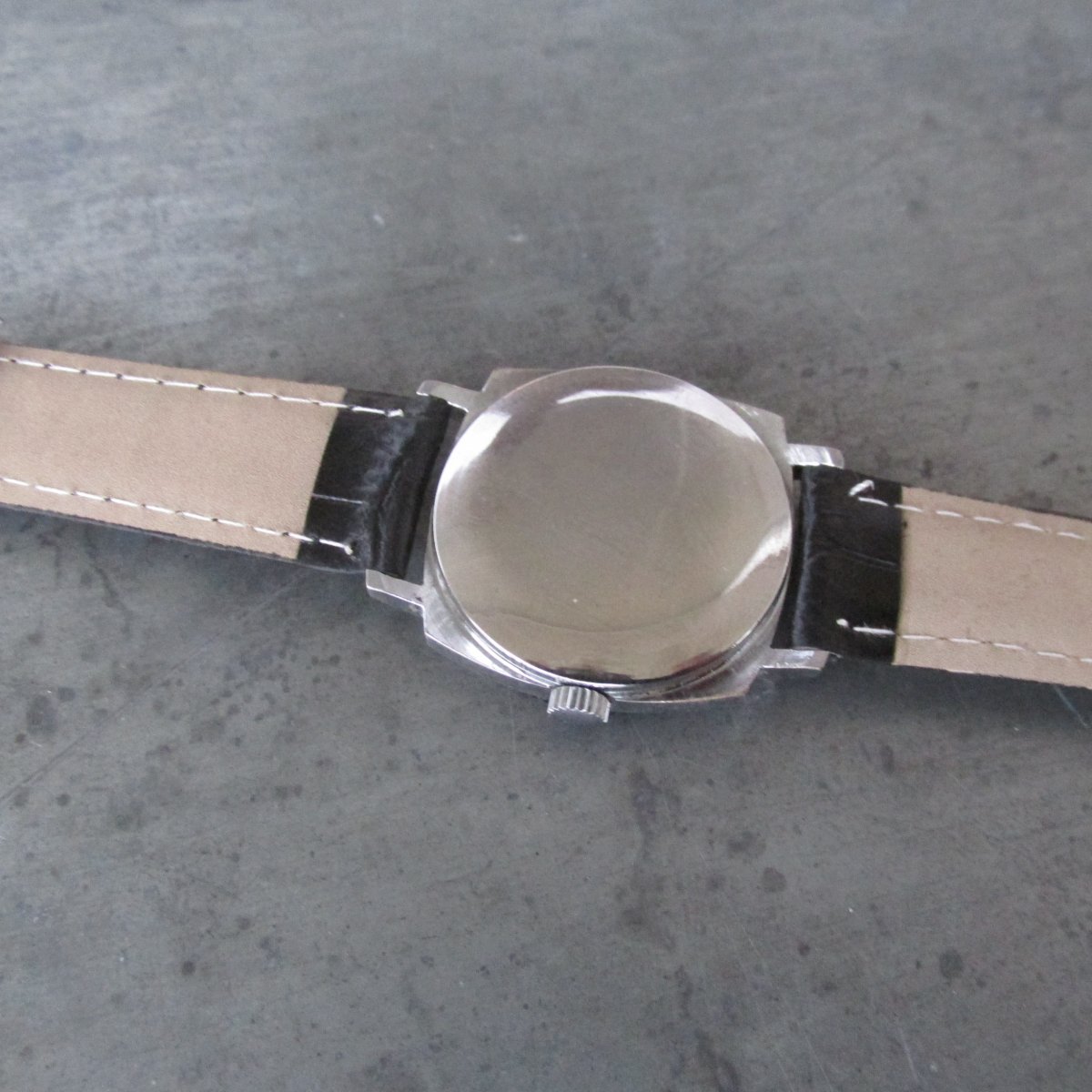 Chromované pouzdro, nový řemínek černé barvy , průměr hodinek je 32x32mm.