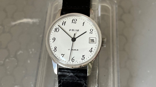Mechanické náramkové retro hodinky Prim s datumem, made in Czechoslovakia.