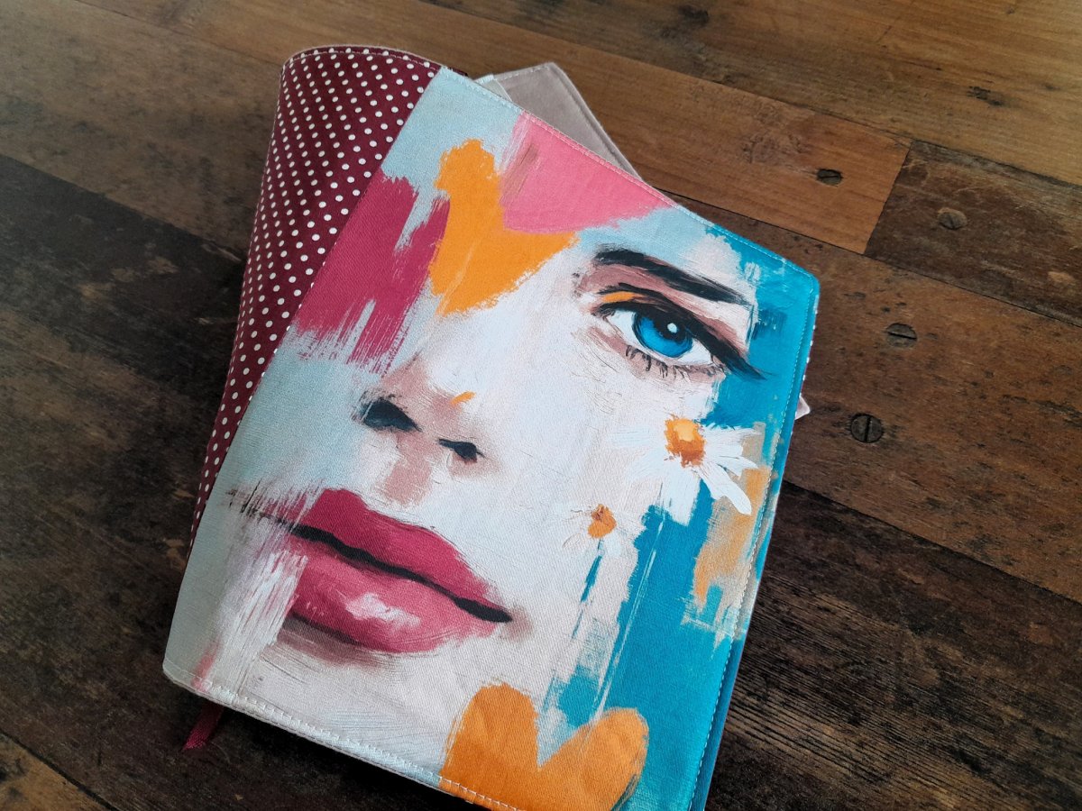 Nabízím nastavitelný obal na knihu, diář,zápisník. Šitý z krásného panelku v kombinaci s vínovým puntíčkem. Vnitřek je starorůžový. Vystužený ronofixem.