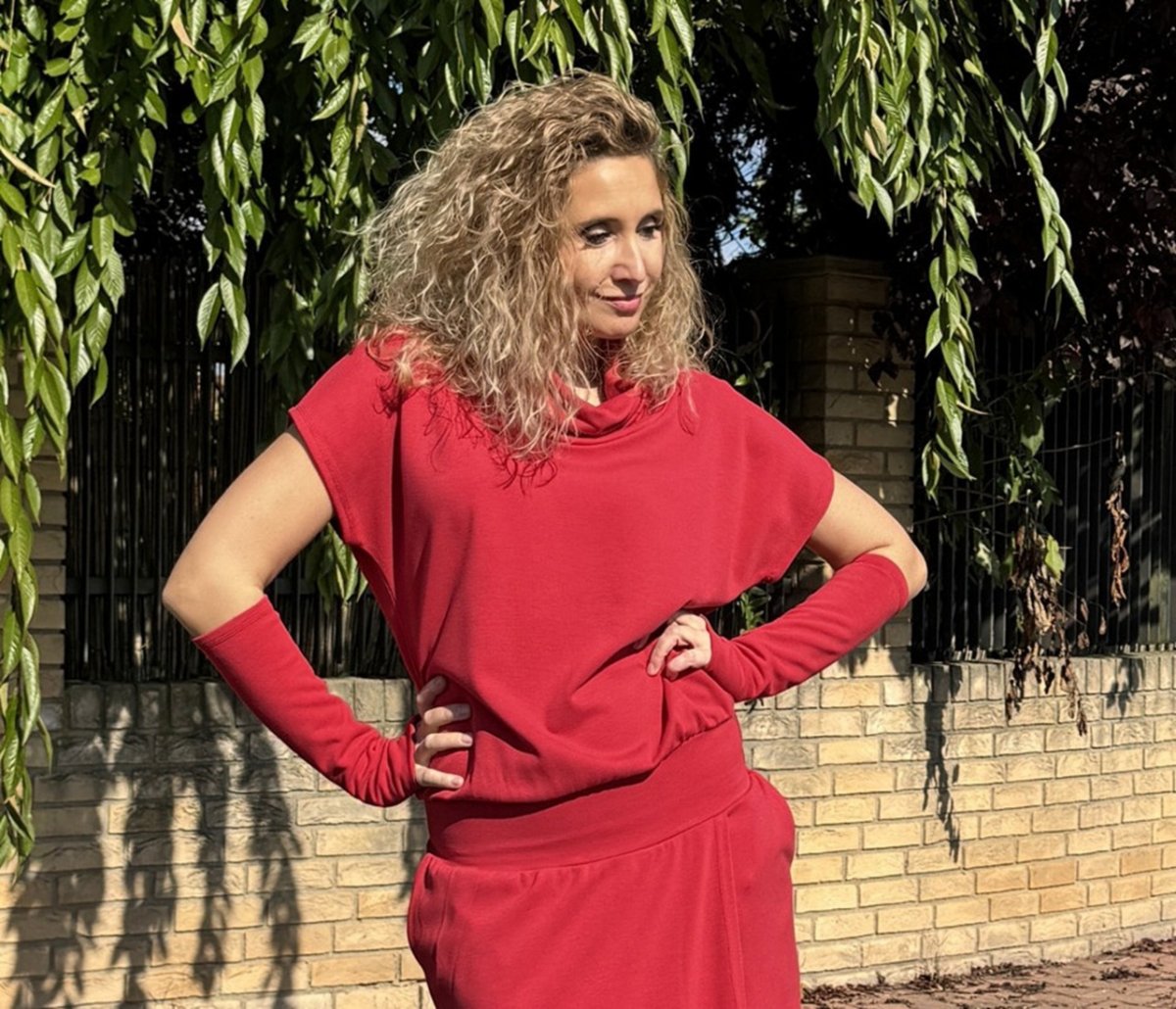 Nátepníky jsou ušité ze středně silného úpletu viskóza/pes/elastan.