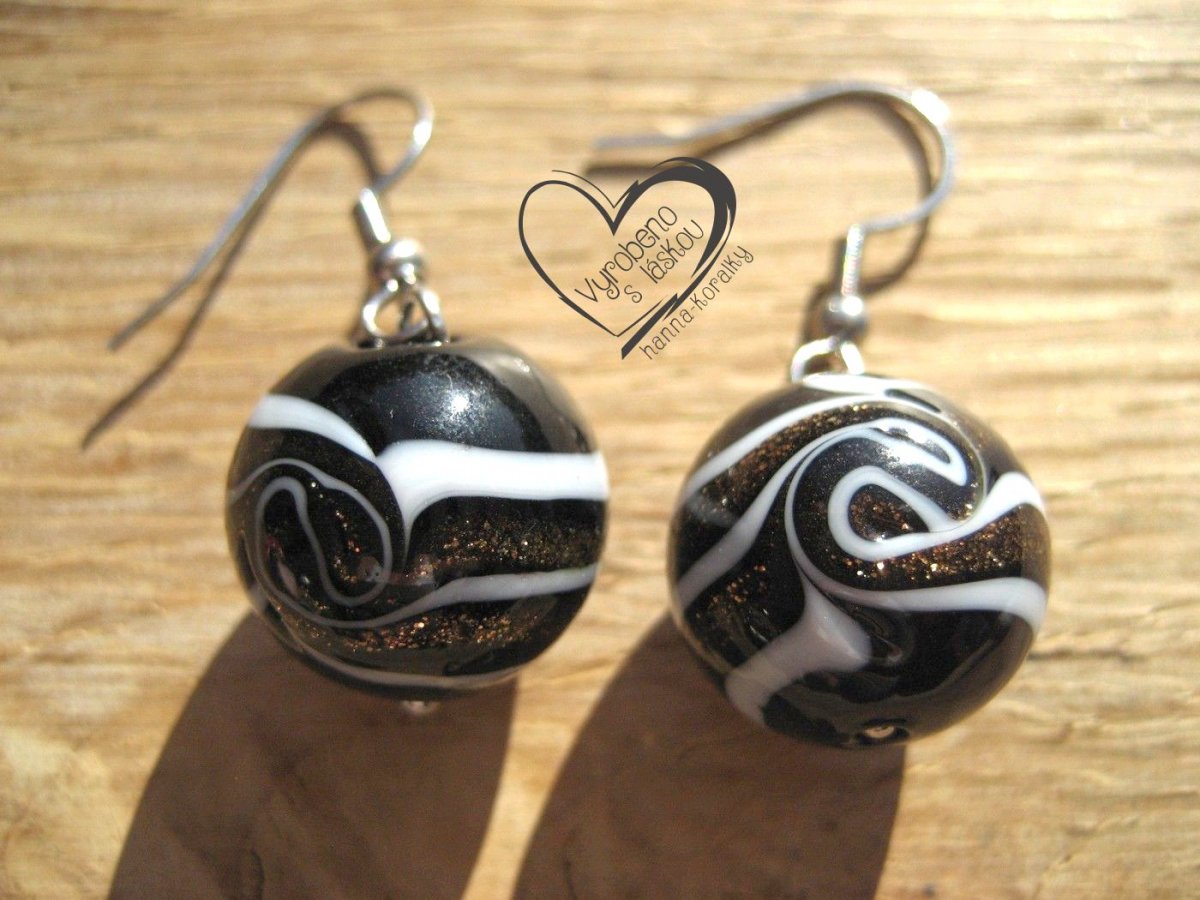 Náušnice z vinutek - vinutých perel, kuličky v kombinaci barev černé, bílé, zlaté, průměr 1,5cm, nýt i naušnicový háček z nerez oceli
